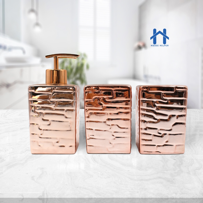 Kit de Banheiro (398C) Cerâmica 3 Peças Porta Sabonete Líquido /Porta Algodão/Porta Escova