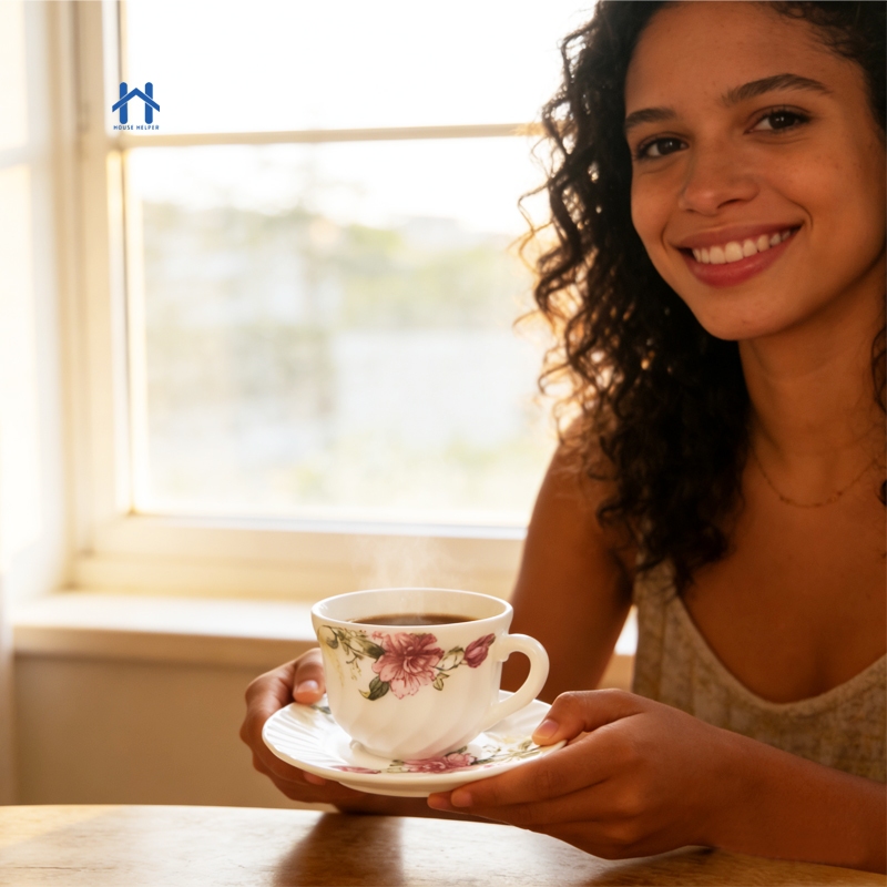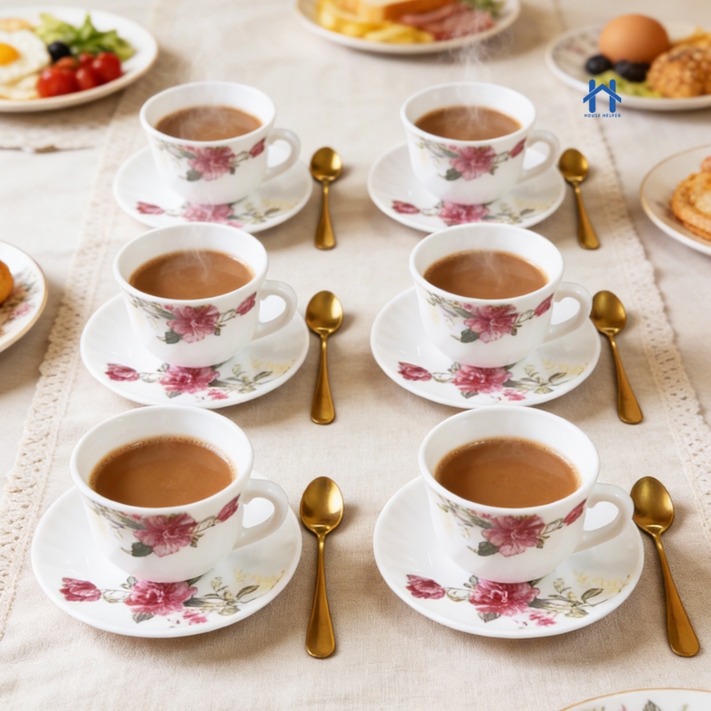 Conjunto de Xícara e Pires de Porcelana 12 Peças para Café e Chá