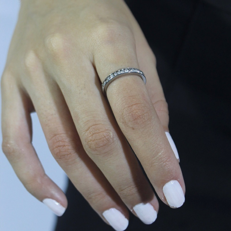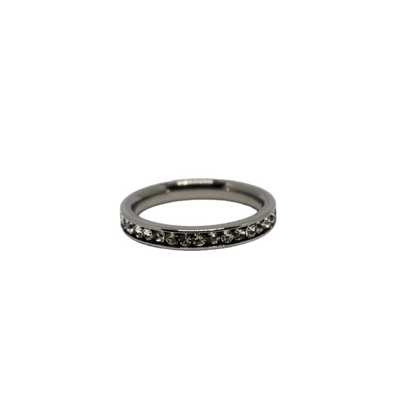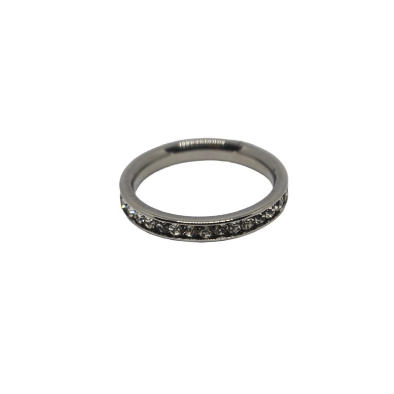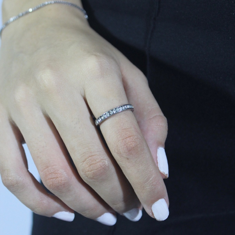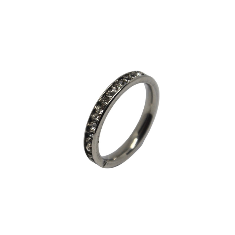 Anel Cravejado de Strass de Aço Inoxidável Prateado Feminino Delicado