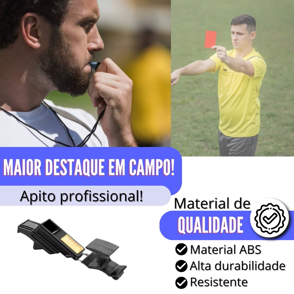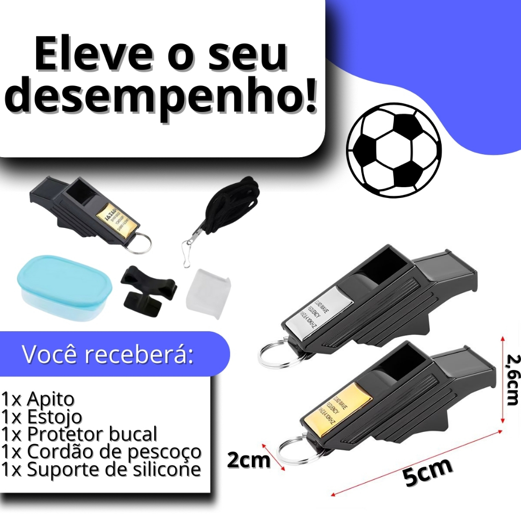Apito Futebol Juiz Profissional 115 Decibéis com Dedal Pronta Entrega
