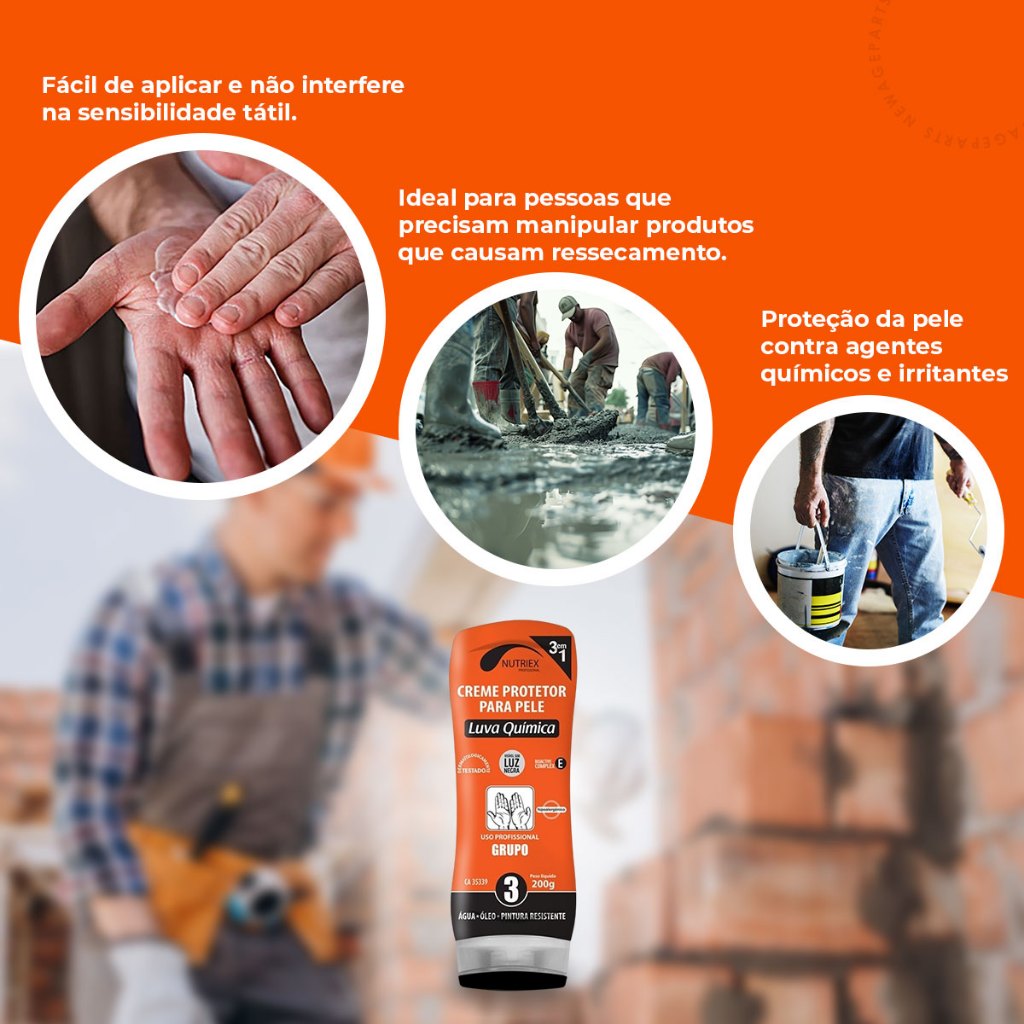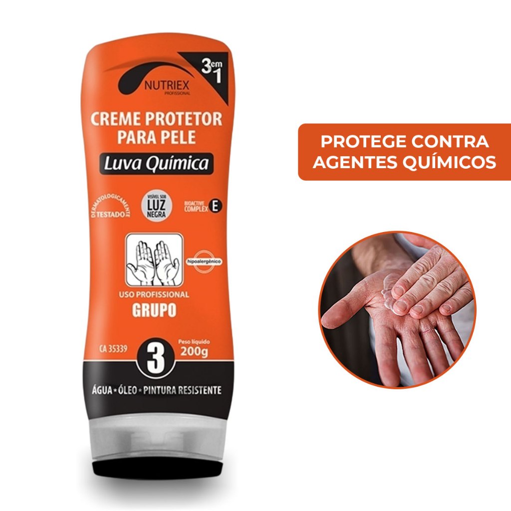Creme de Proteção Luva Química EPI Nutriex 200g Proteção Contra Produtos Quimicos Óleo Pintura