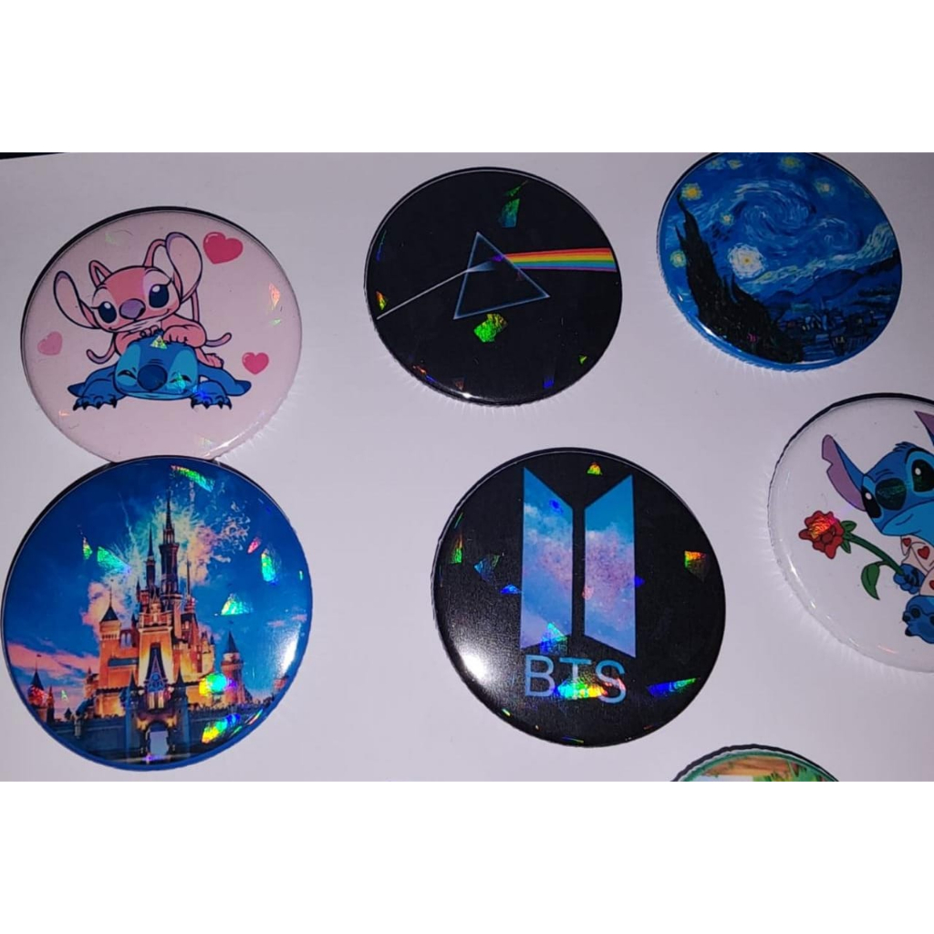 Kit 10 Bottons-Botons-Butons-Broche 5,5cm HOLOGRÁFICO
