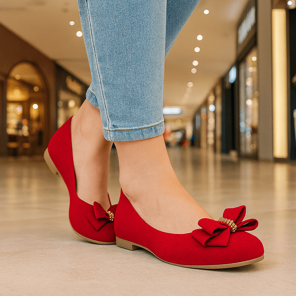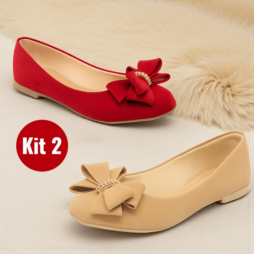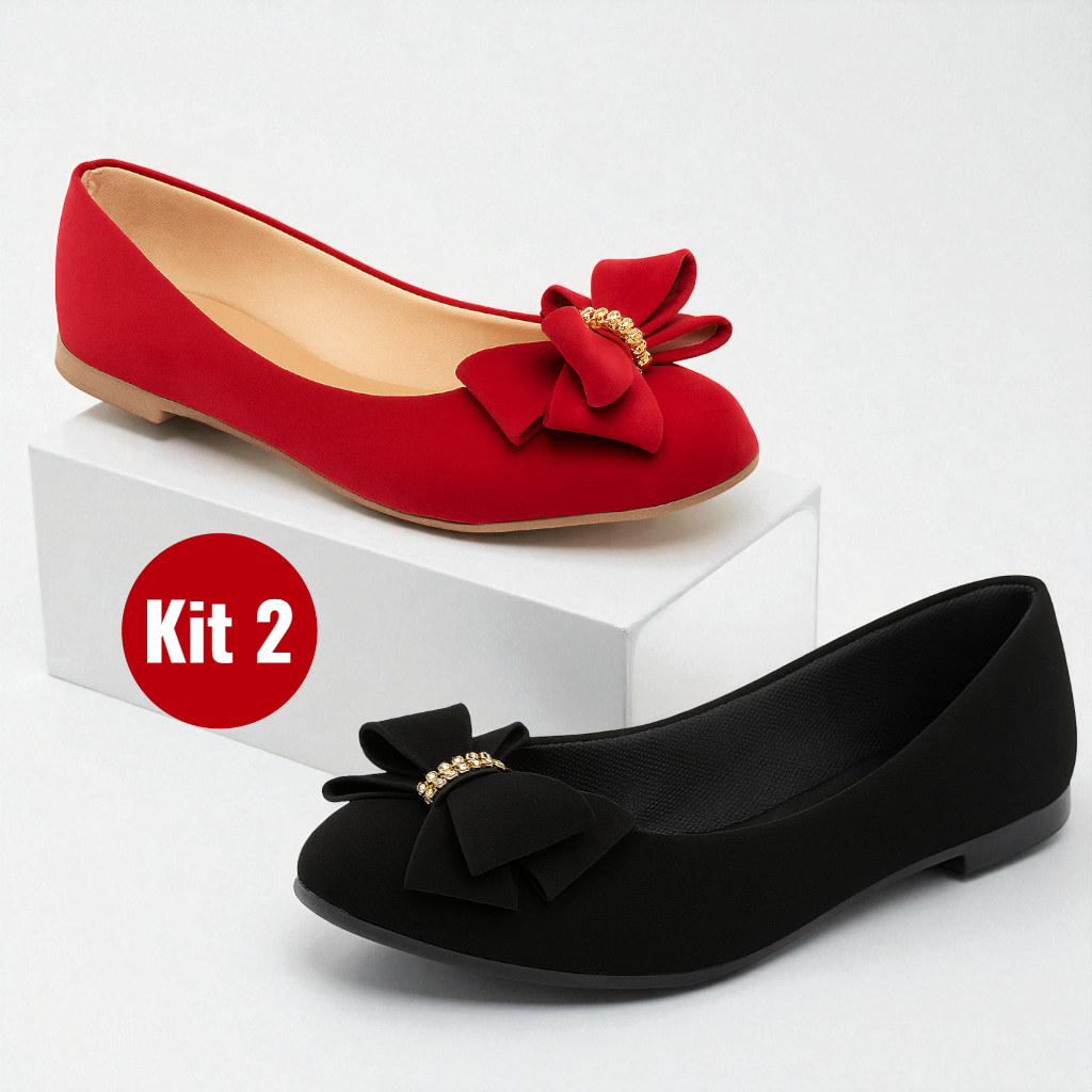 Kit 2 Pares Sapatilha Feminina com Laço Strass Confortável Sapato Casual Bico Fino Social
