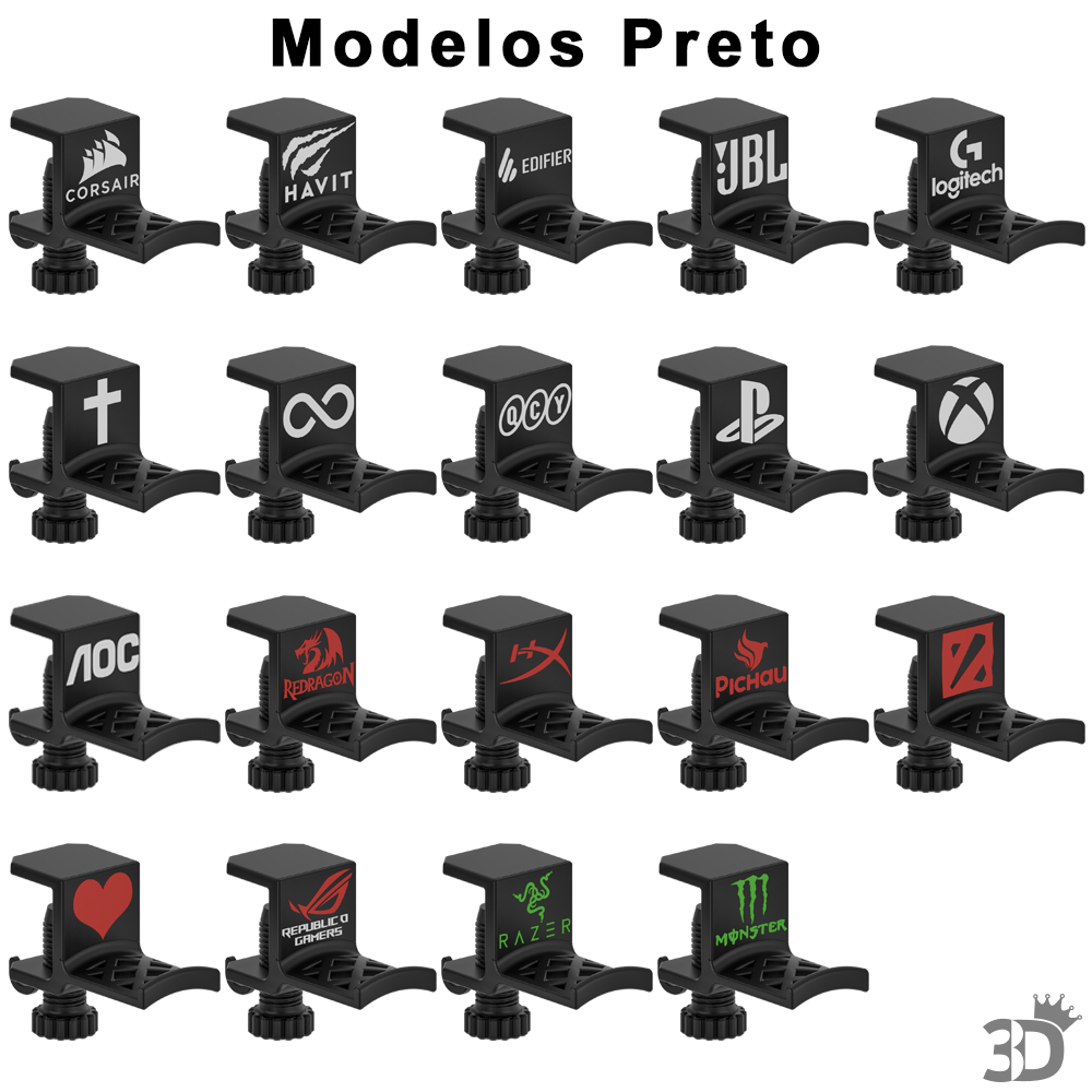 Suporte de Mesa Fone Headset Headphone Com Organizador De Cabos Personalize Varios Modelos