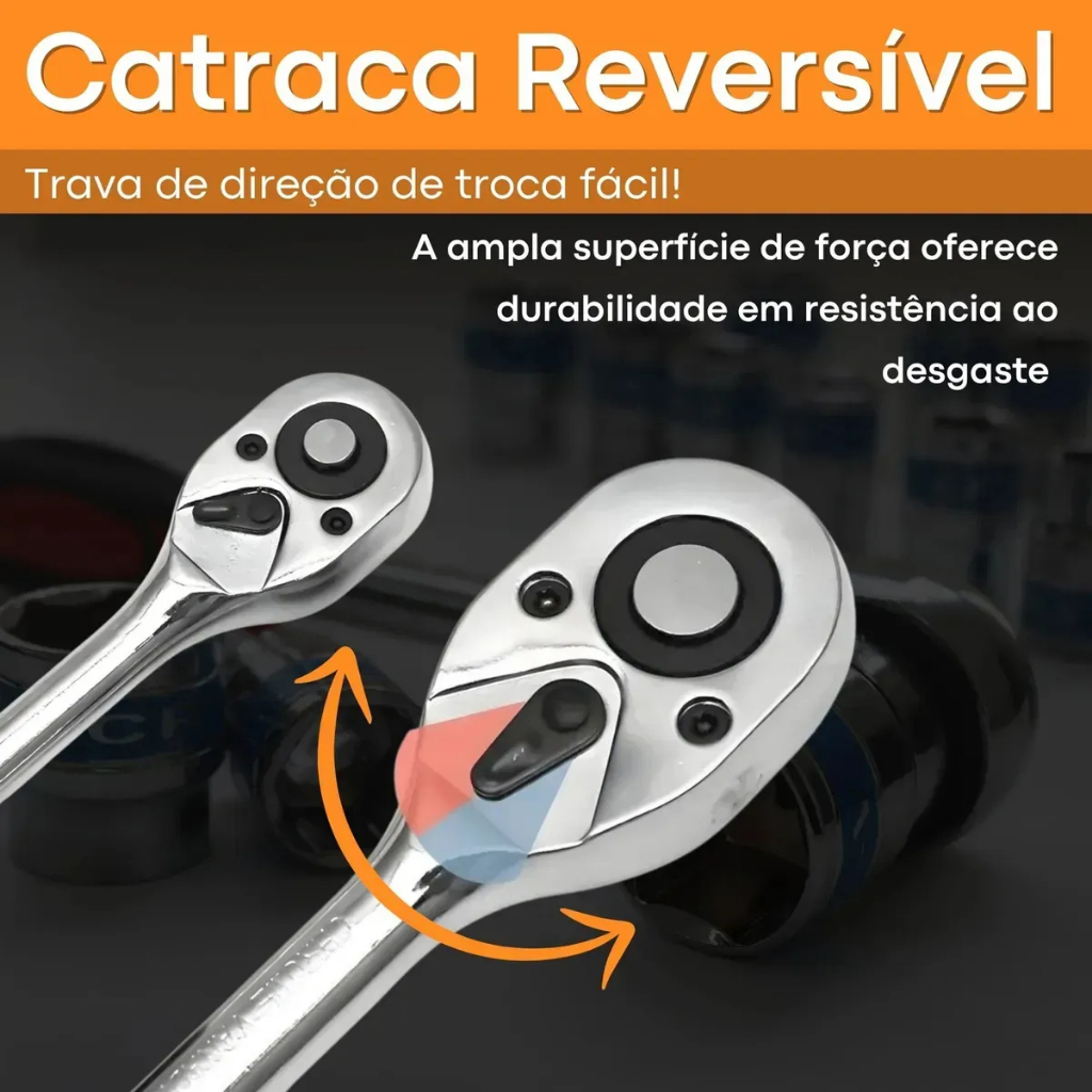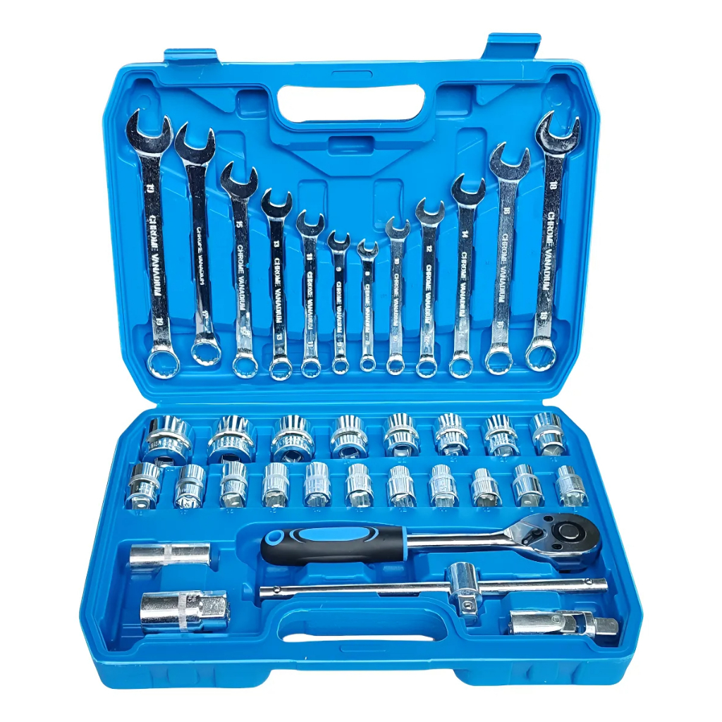 Kit de Ferramentas 37 Peças profissional jogo chave combinada soquetes e catraca grande