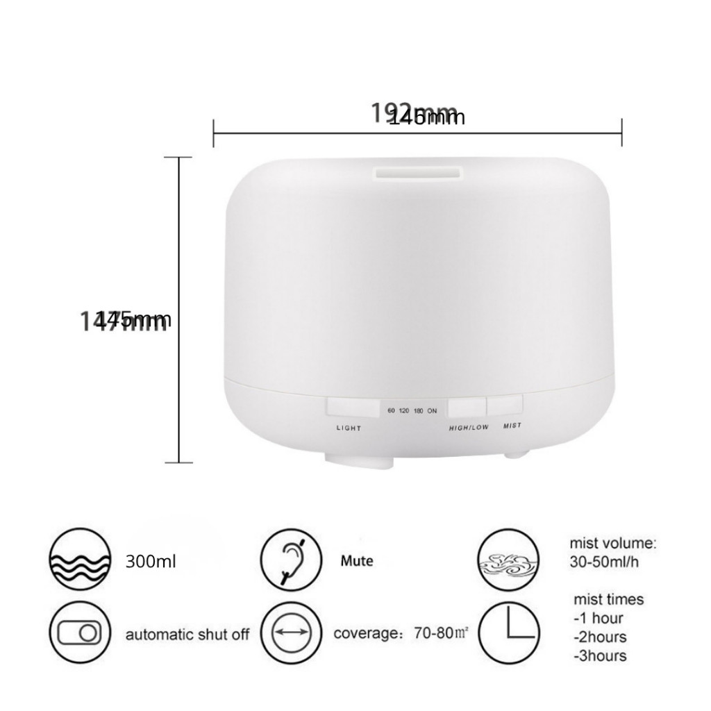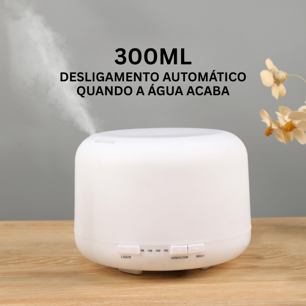 Umidificador Difusor Aromatizador 500ml Ultrassônico Estilo Branco com Led 7 cores com controle