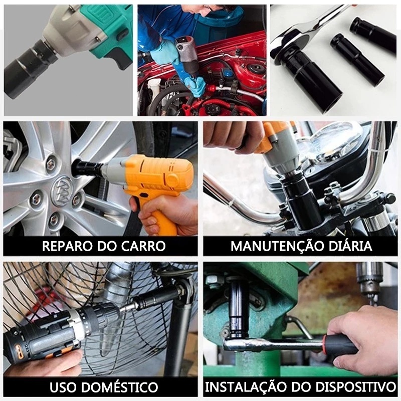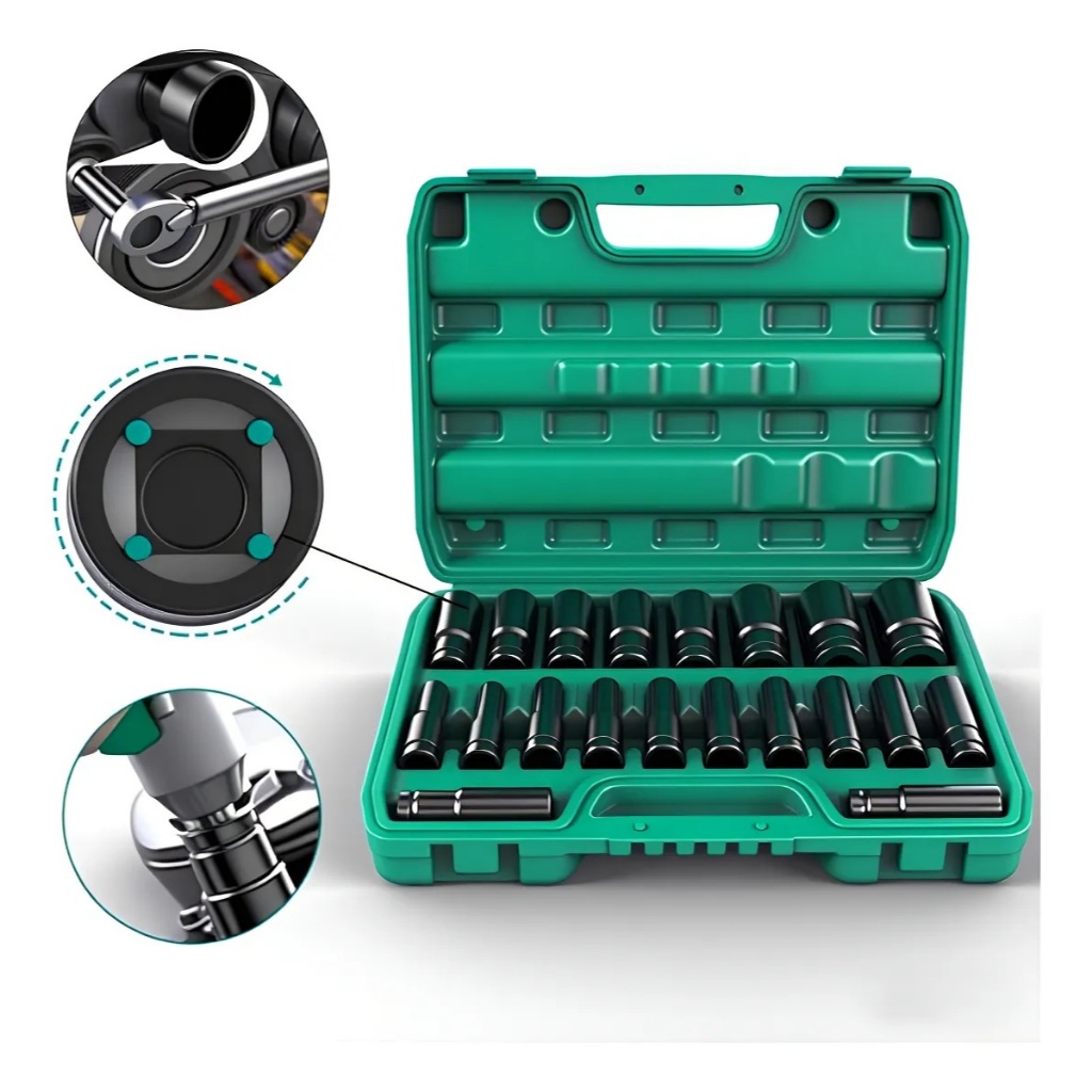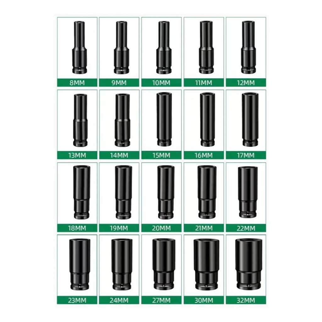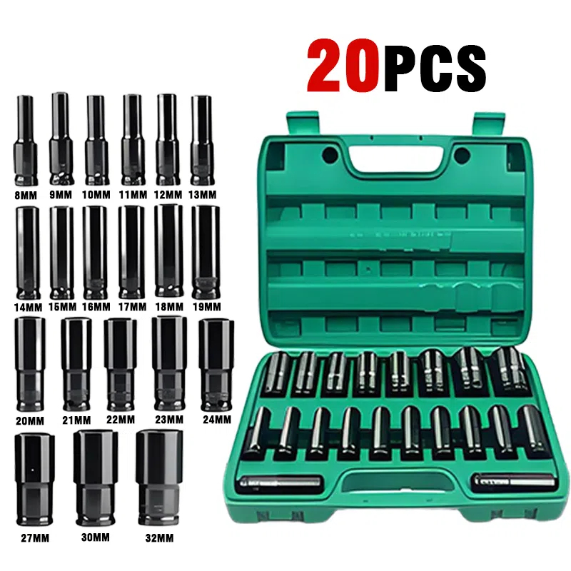 20PCS Jogo de soquetes de impacto longo 1/2 Pol. 8mm - 32mm