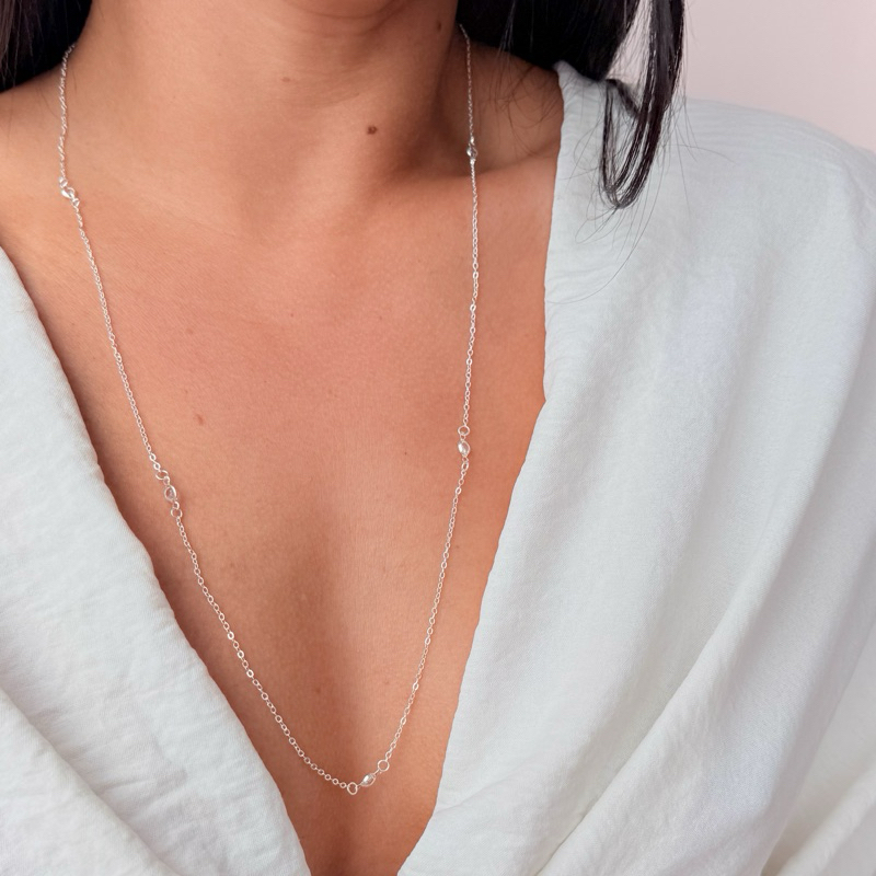 Colar longo Tiffany Banhado a Prata CL195