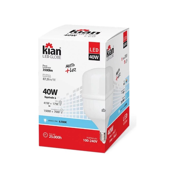 Lâmpada Led Globe Branca 40W 6500K Bivolt KIAN