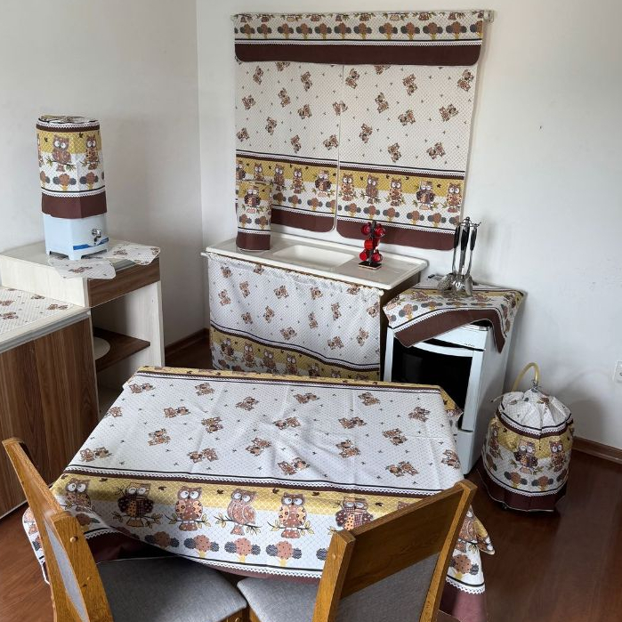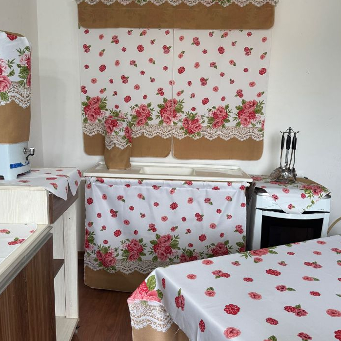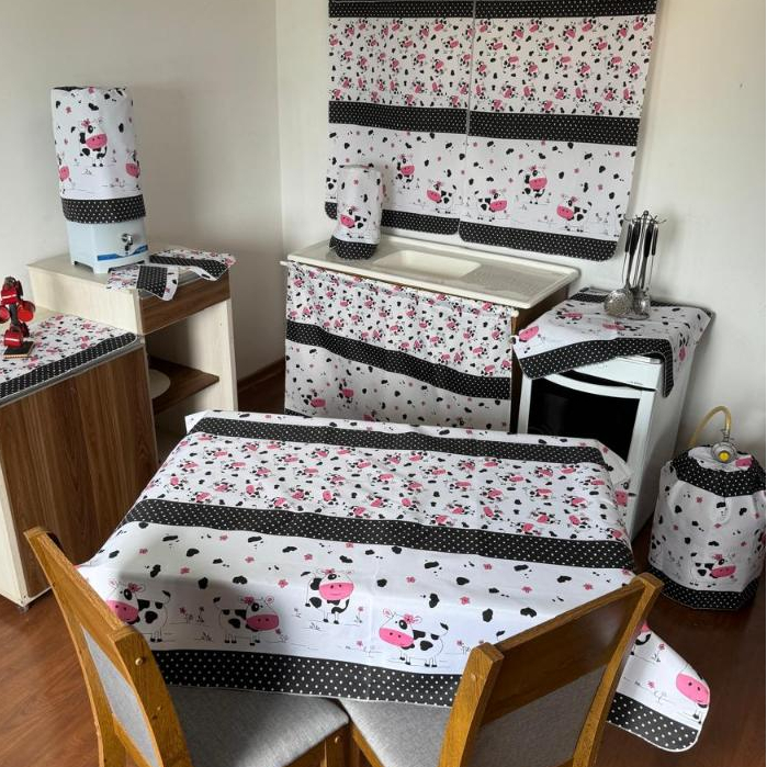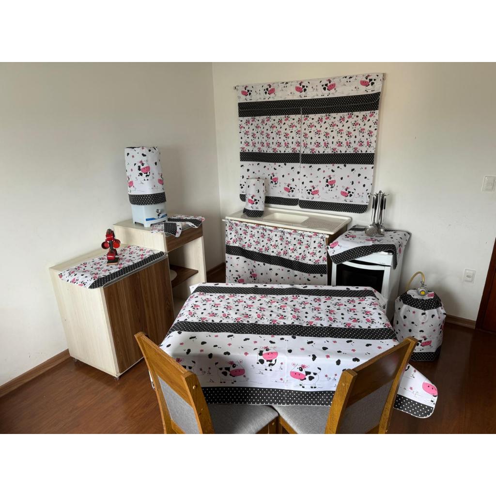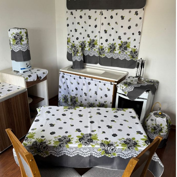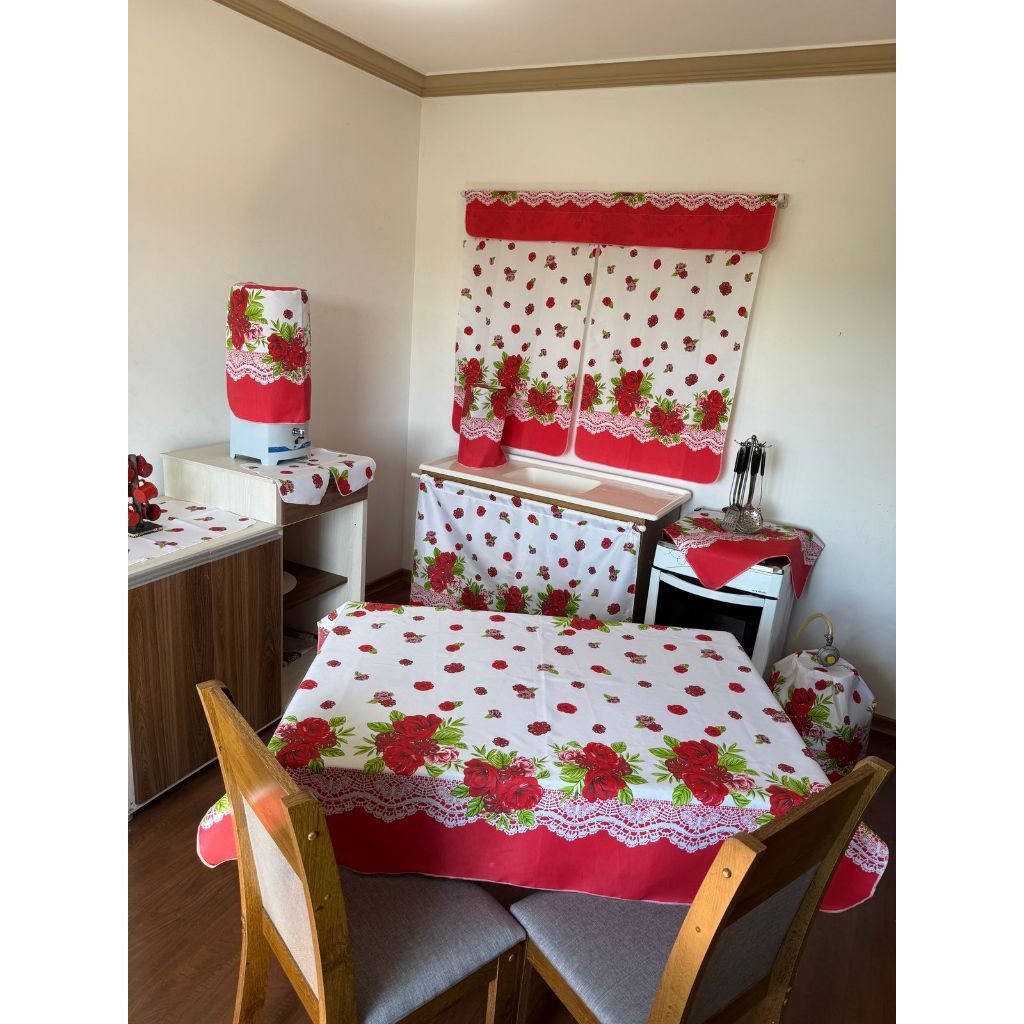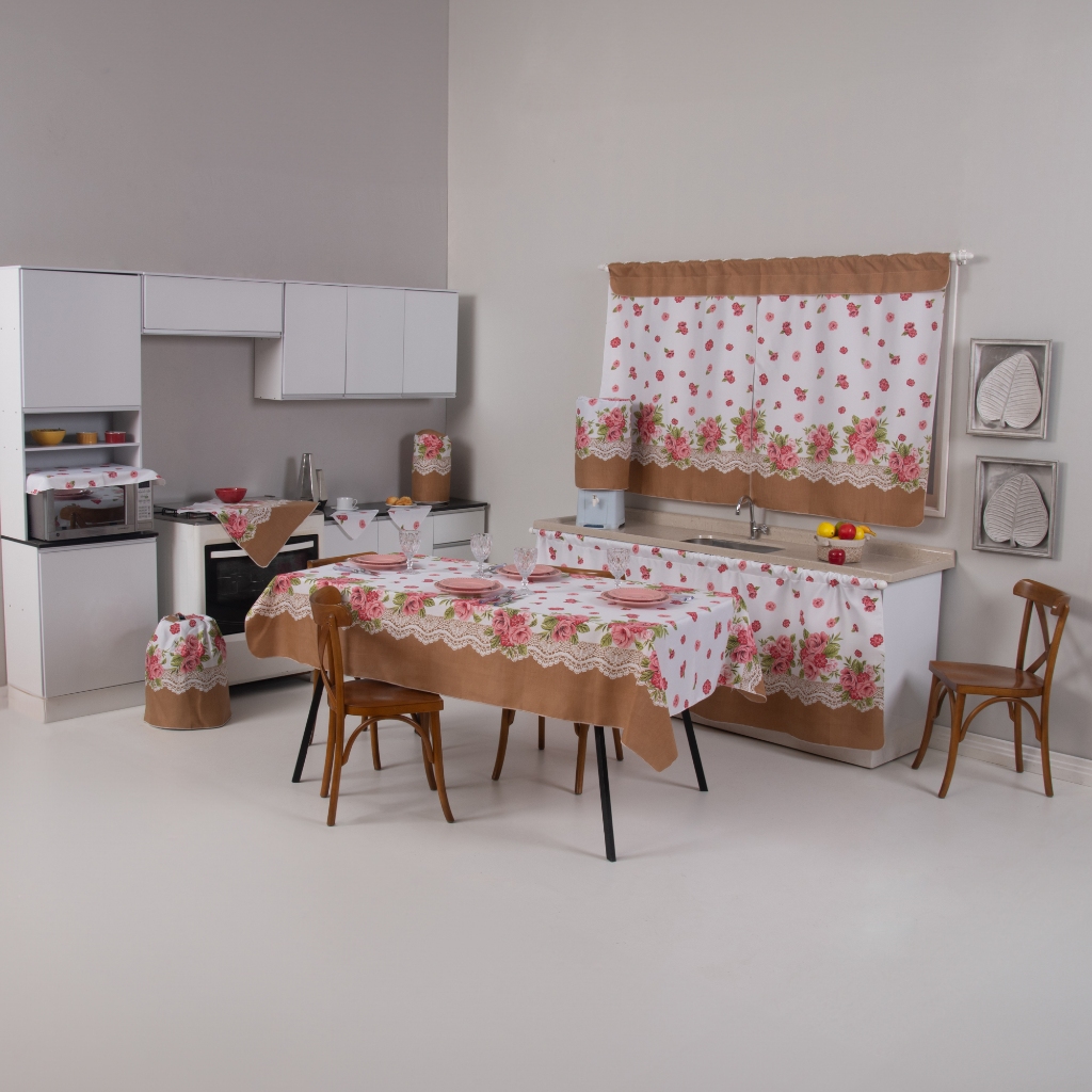 Jogo De Cozinha Com Cortina De Pia Janela Toalha De Mesa Completo 10 Peças Tecido Estampado Oxford