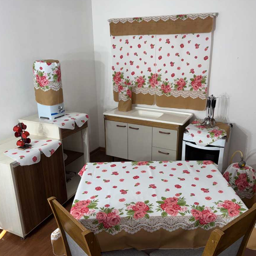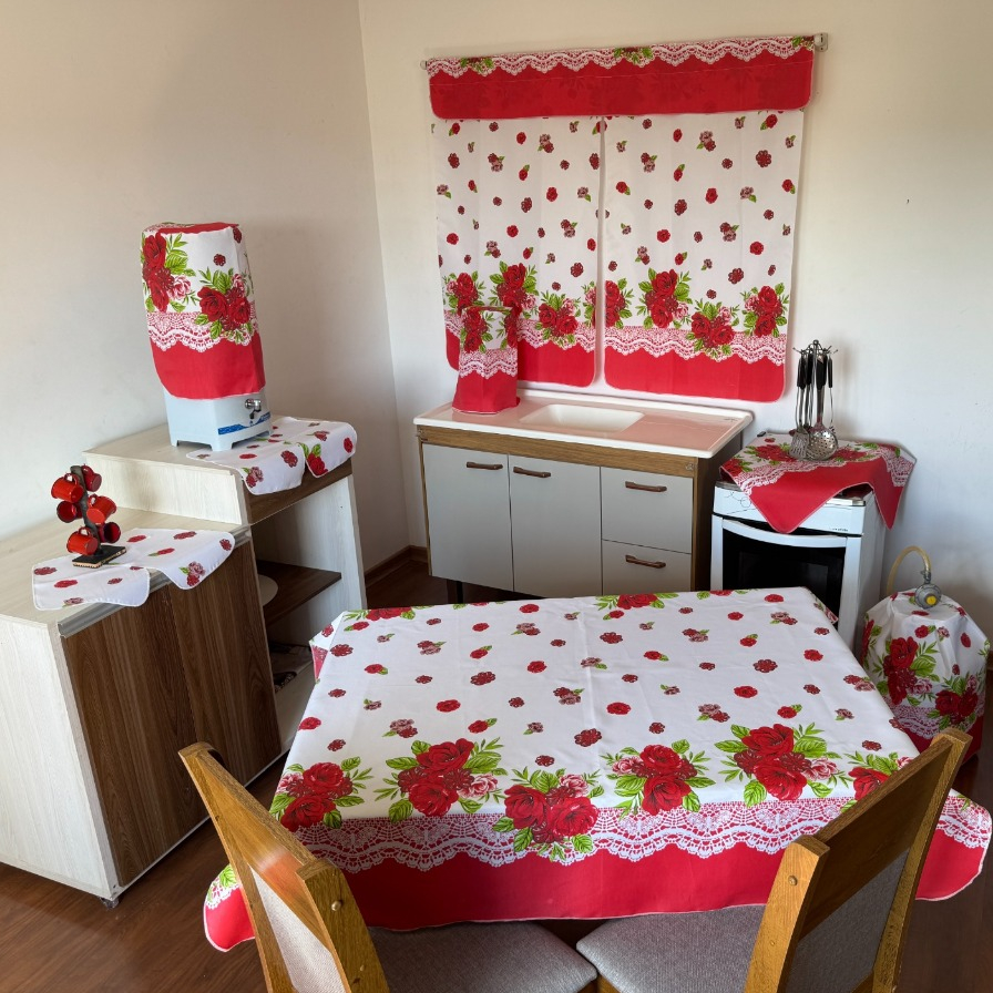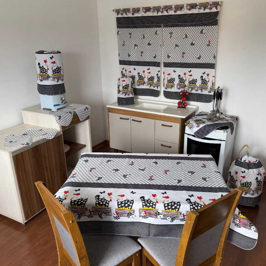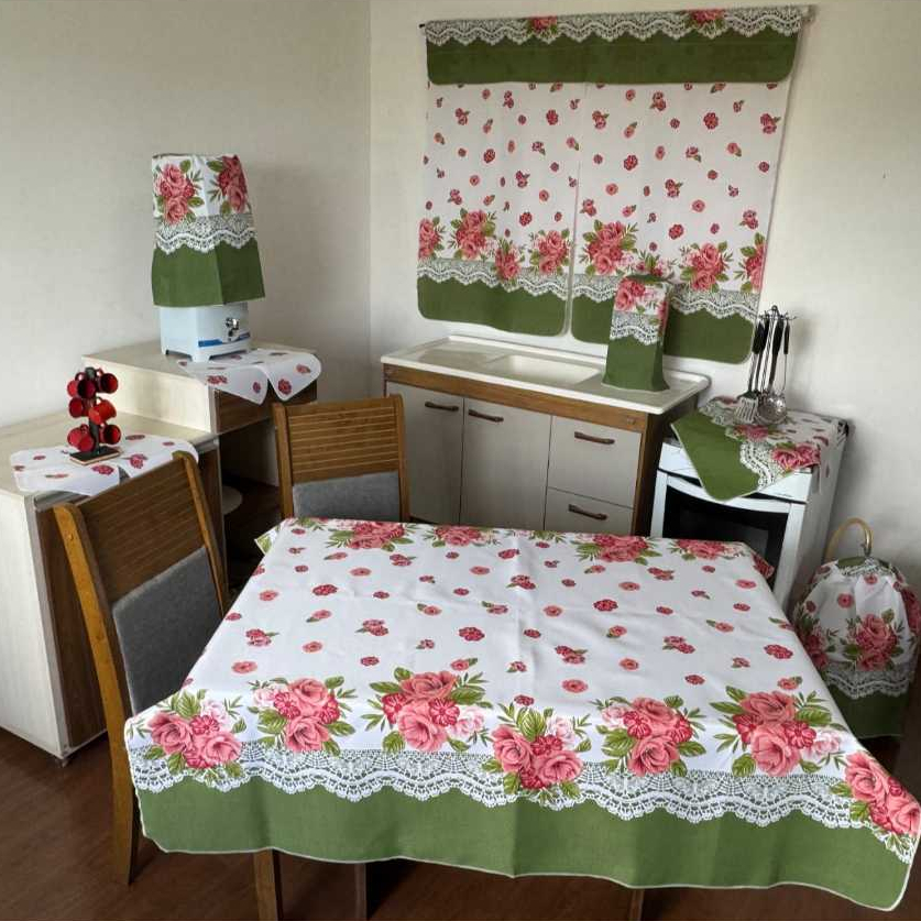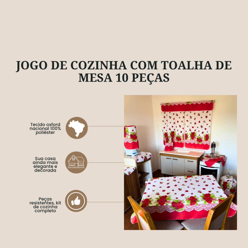 Jogo De Cozinha Oxford Estampado Com 10 Peças Com Toalha De Mesa e Cortina De Janela 100% Poliéster