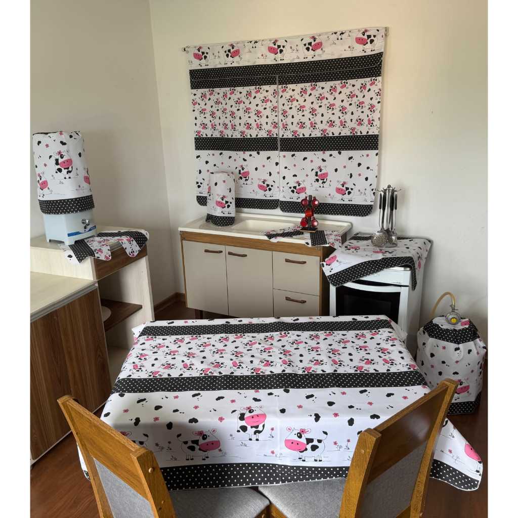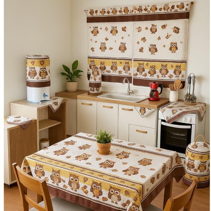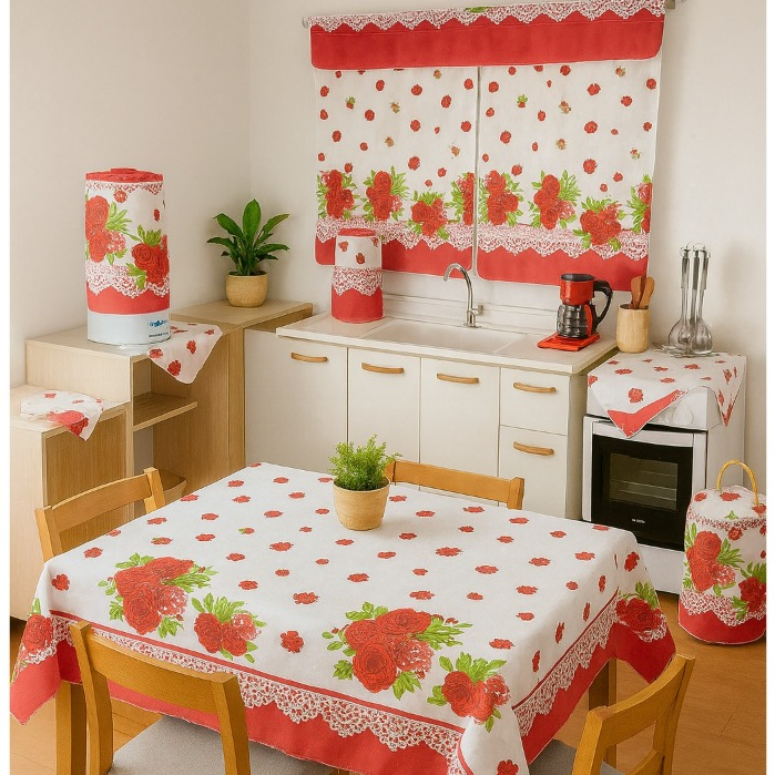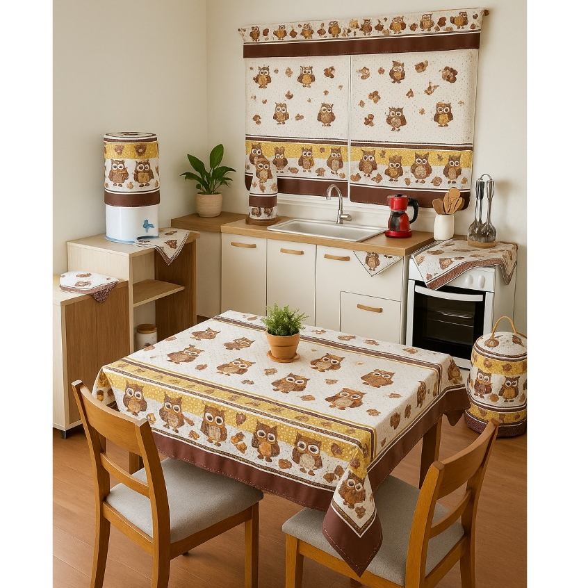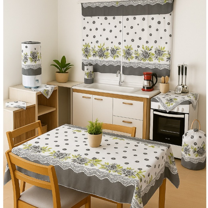 Kit 10 Peças Conjunto De Cozinha Com Toalha De Mesa e Cortina De Janela Decoração De Casa Completo