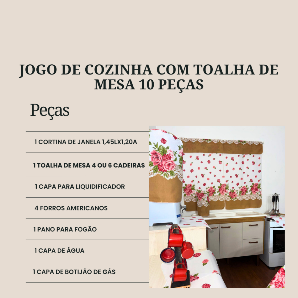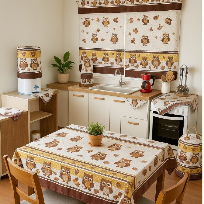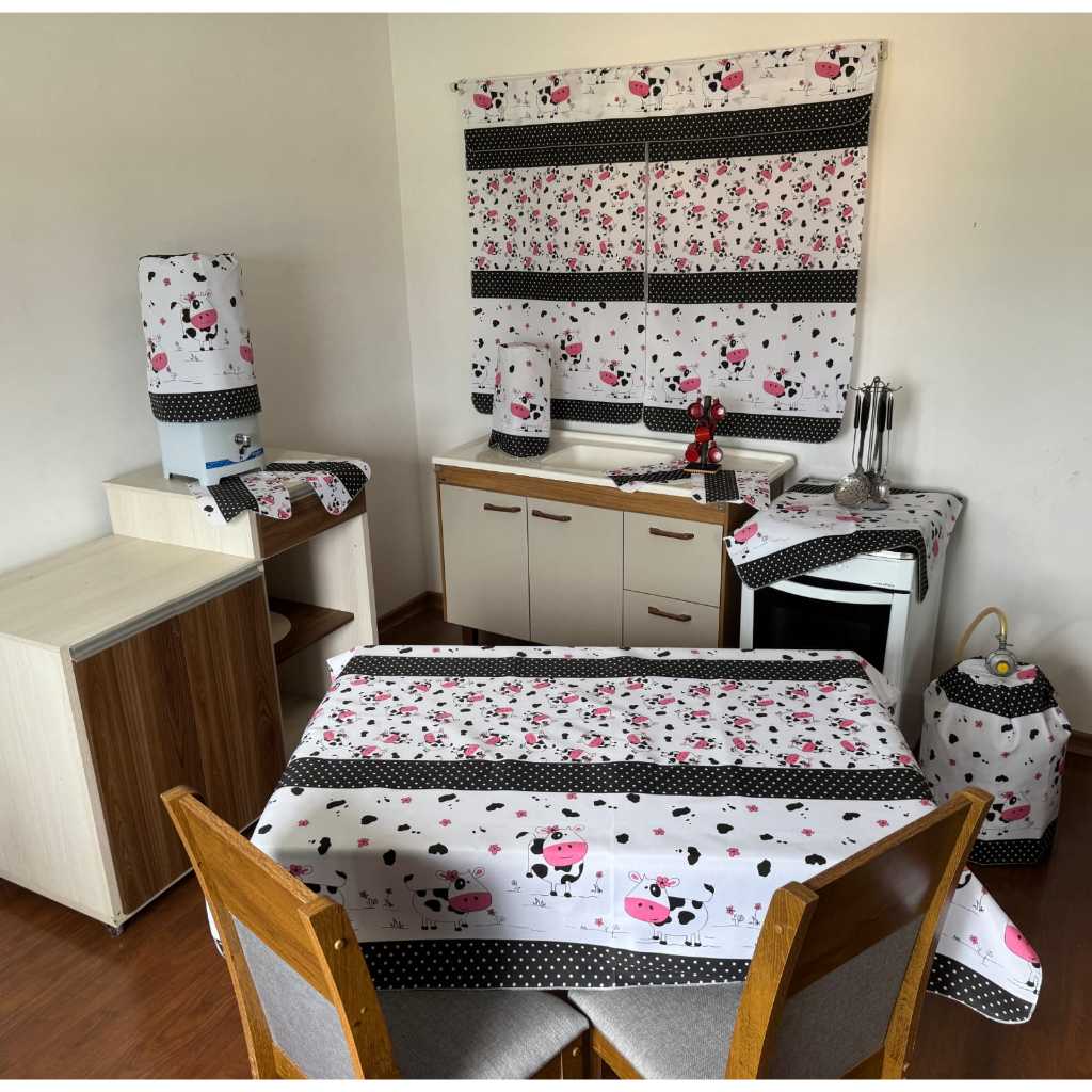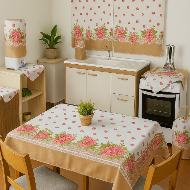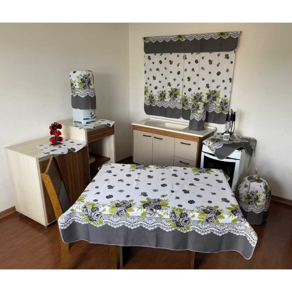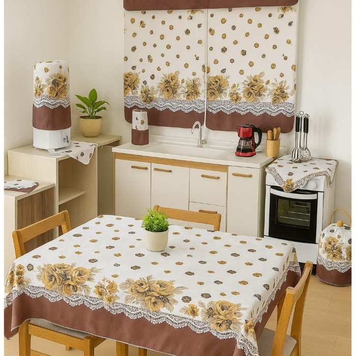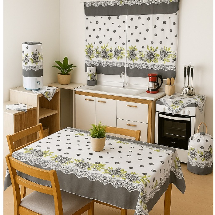 Conjunto De Cozinha Toalha De Mesa Cortina De Janela Decoração De Casa Kit 10 Peças Em Tecido Oxford