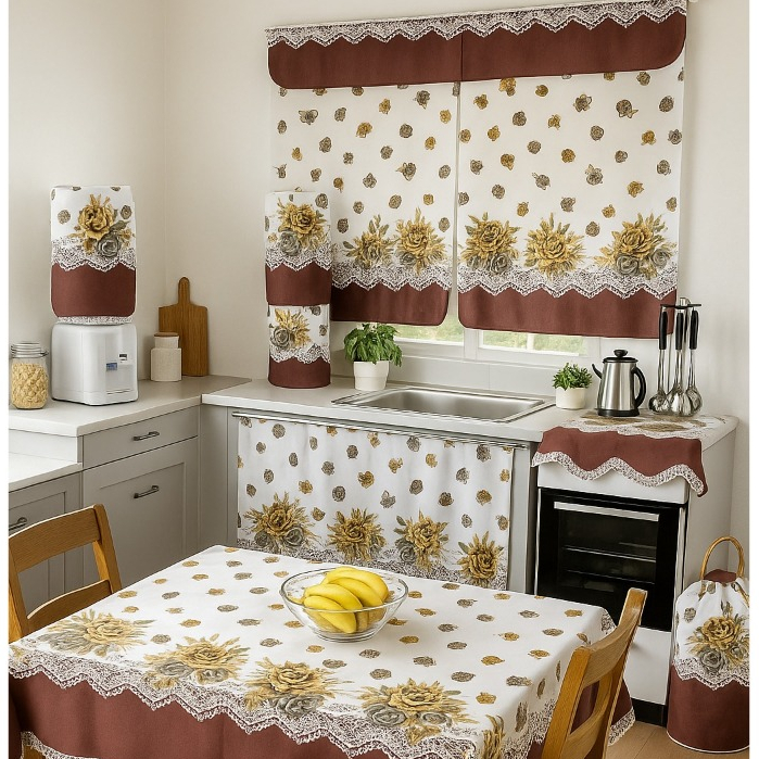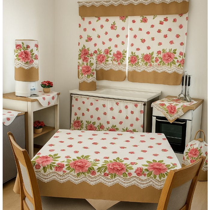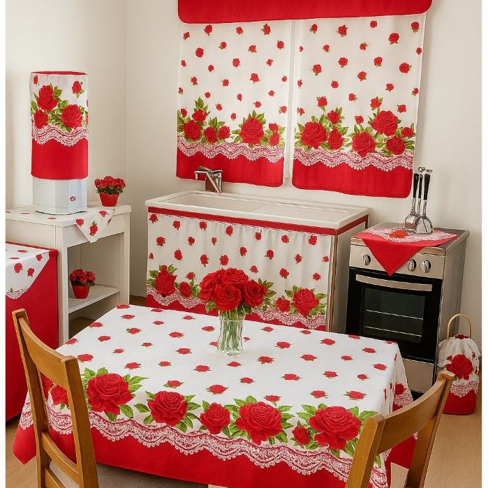 Jogo De Cozinha Completo 10 Peças Cortina De Pia Janela Toalha De Mesa Toalha De Chá Decoração