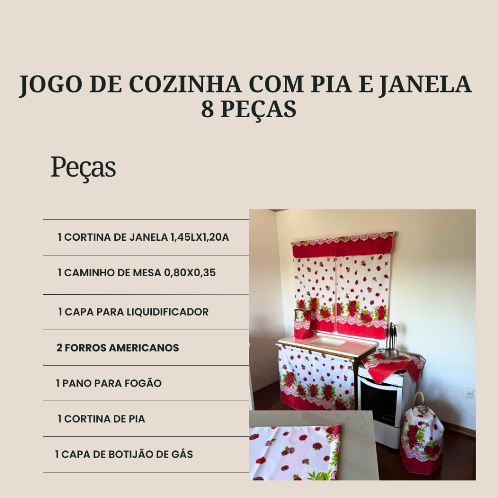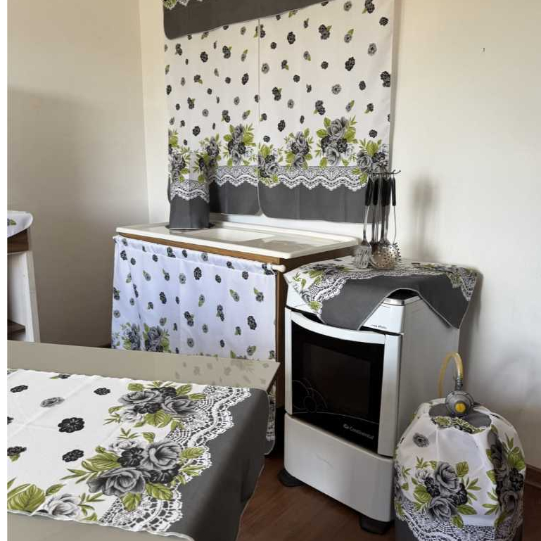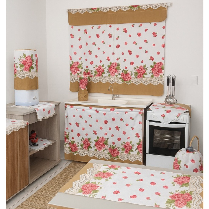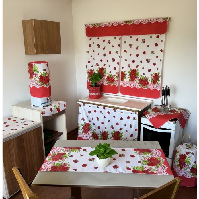 Jogo De Cozinha Kit Com 8 Peças Com Cortina De Pia E Janela Caminho De Mesa Capa De Gás Estampado