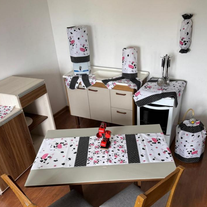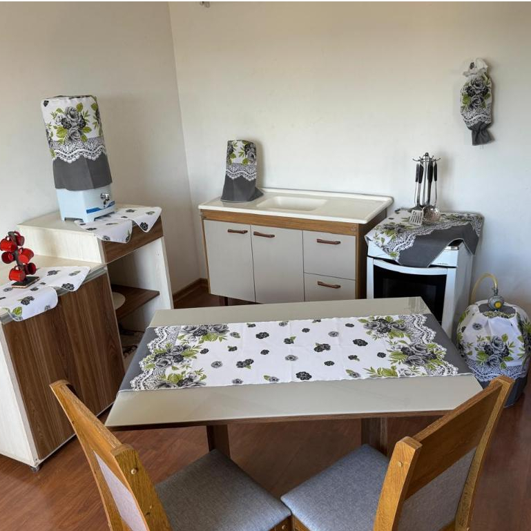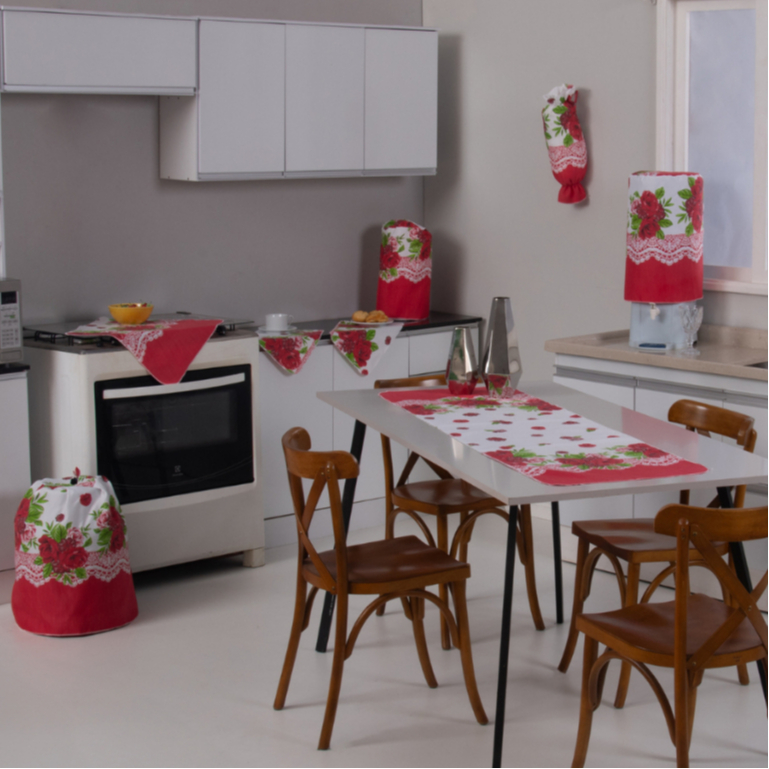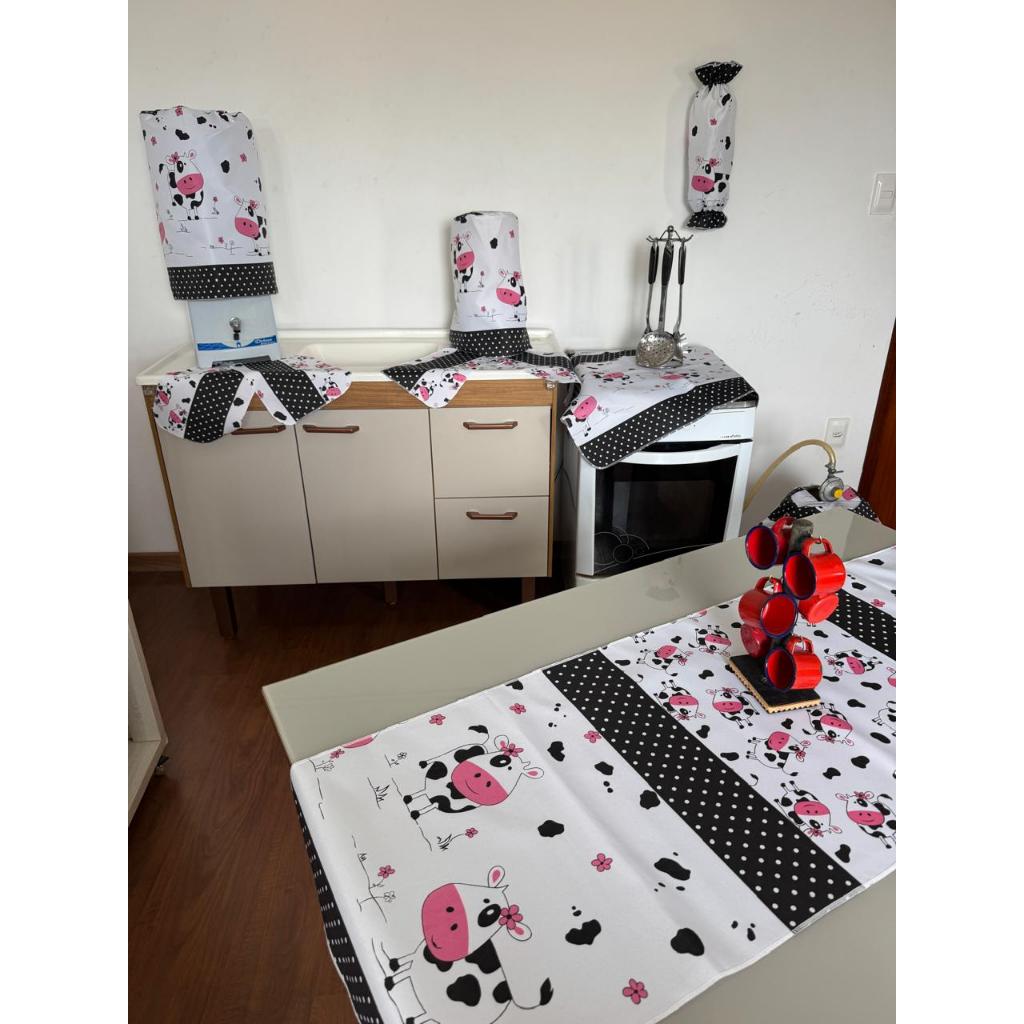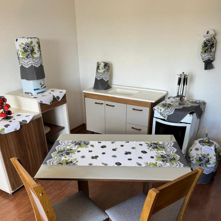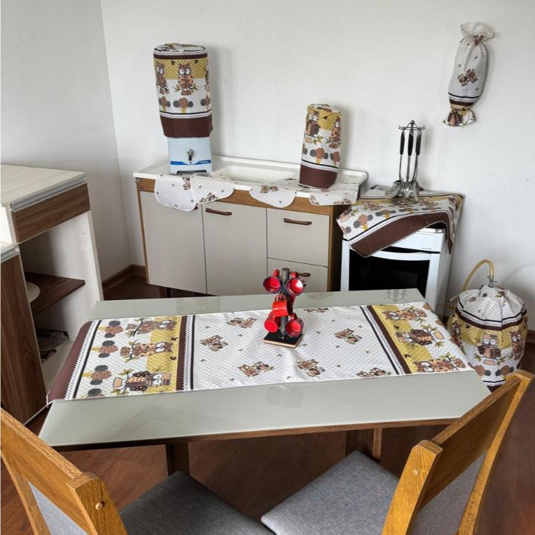 Jogo De Cozinha Caminho De Mesa Oxford Porta Sacolinhas Estampado Decoração 10 Peças 100% Poliéster