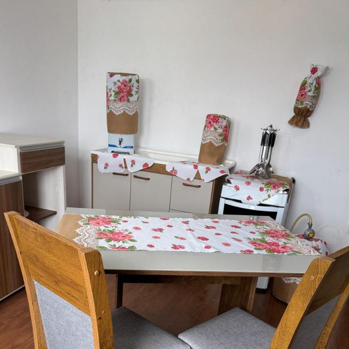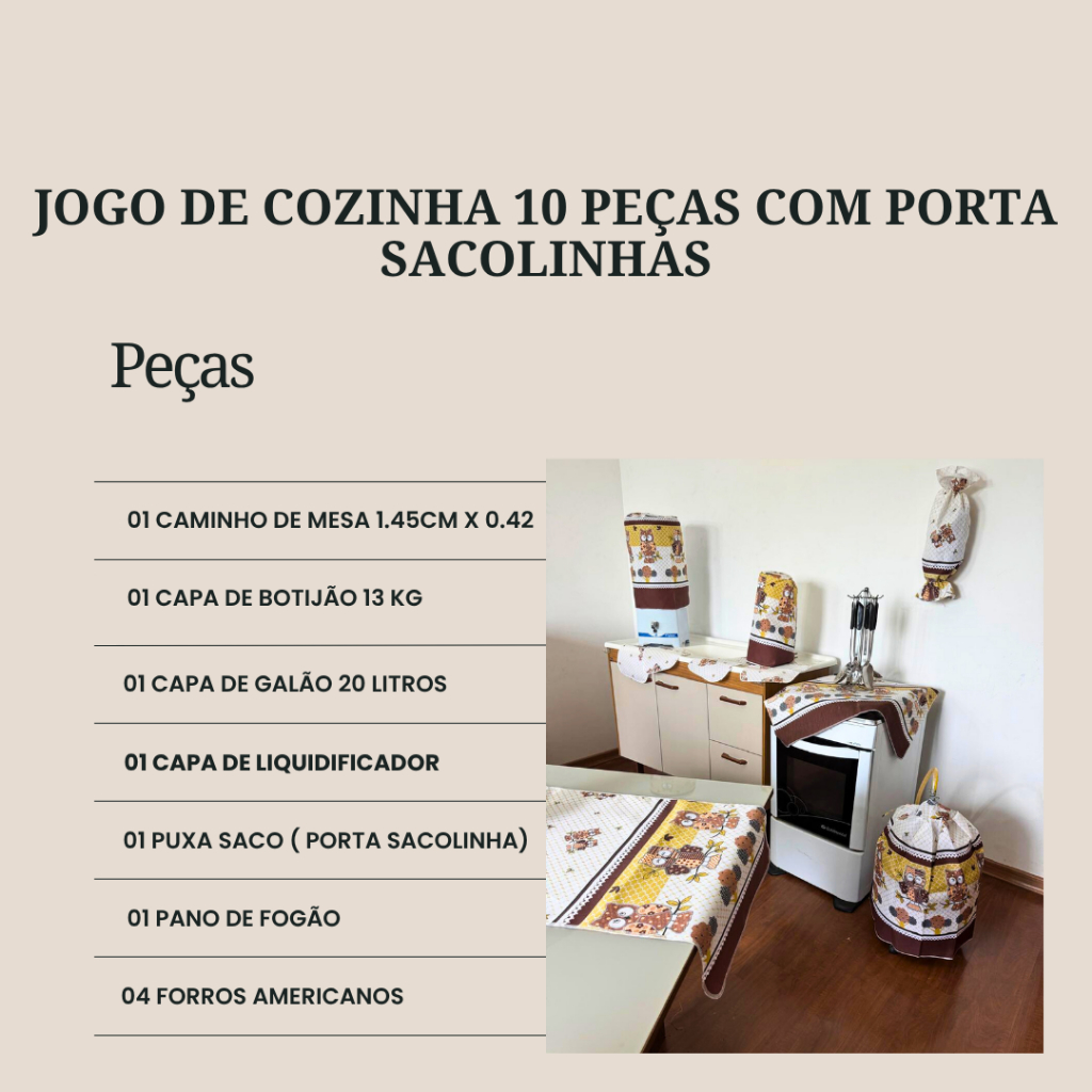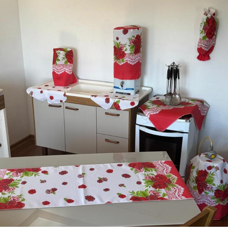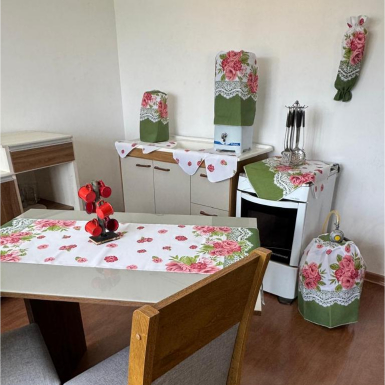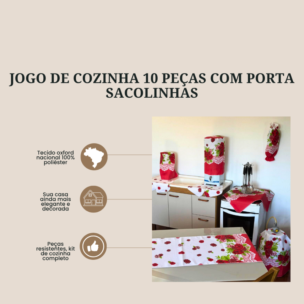 Jogo De Cozinha Caminho De Mesa Oxford Porta Sacolinhas Estampado Decoração 10 Peças 100% Poliéster