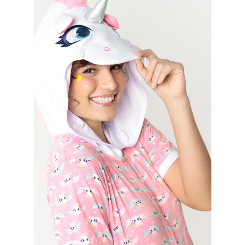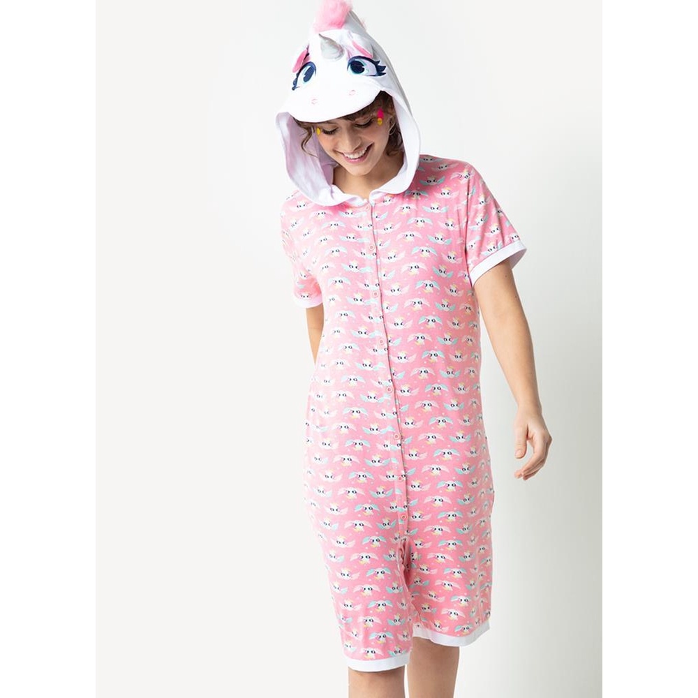 Macacão manga curta adulto visco fantasia unicórnio - Puket