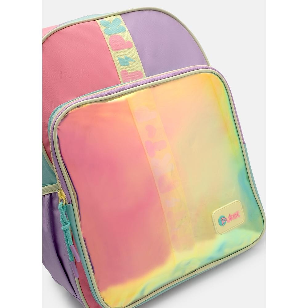 Mochila Infantil Menina Costas Rosa Com Adesivos Color Block Puket