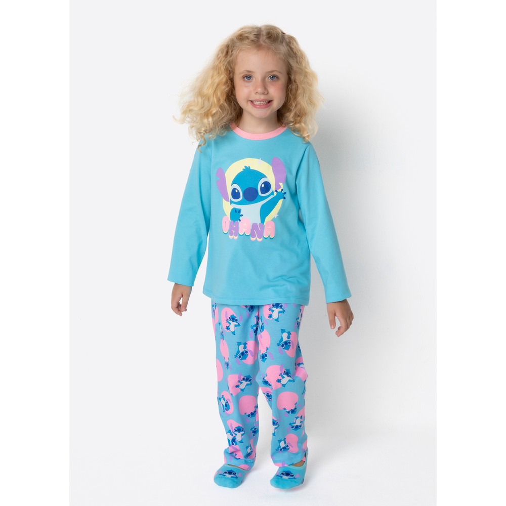 Pijama infantil Menina Inverno Blusa Manga Longa e Calça Algodão Stitch Disney