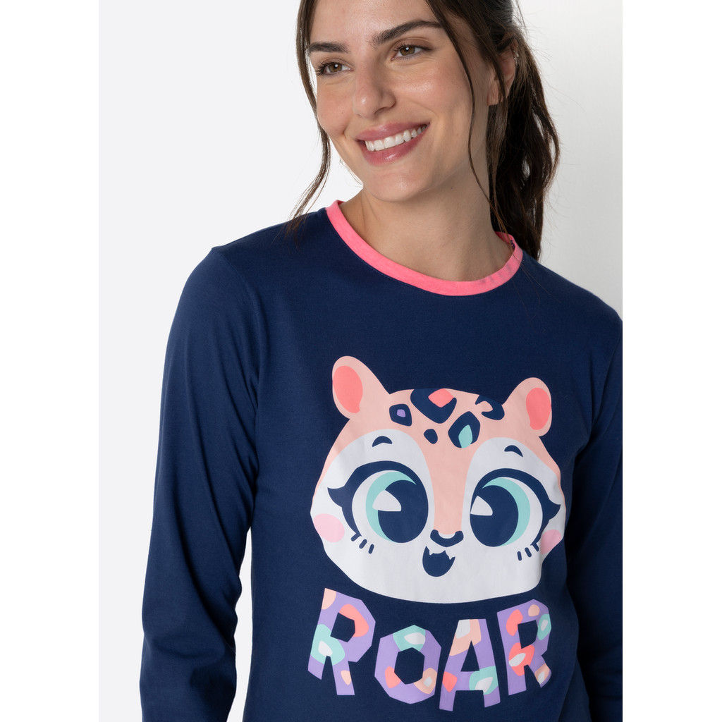 Pijama Manga Longa Algodão Feminino Onça - Puket