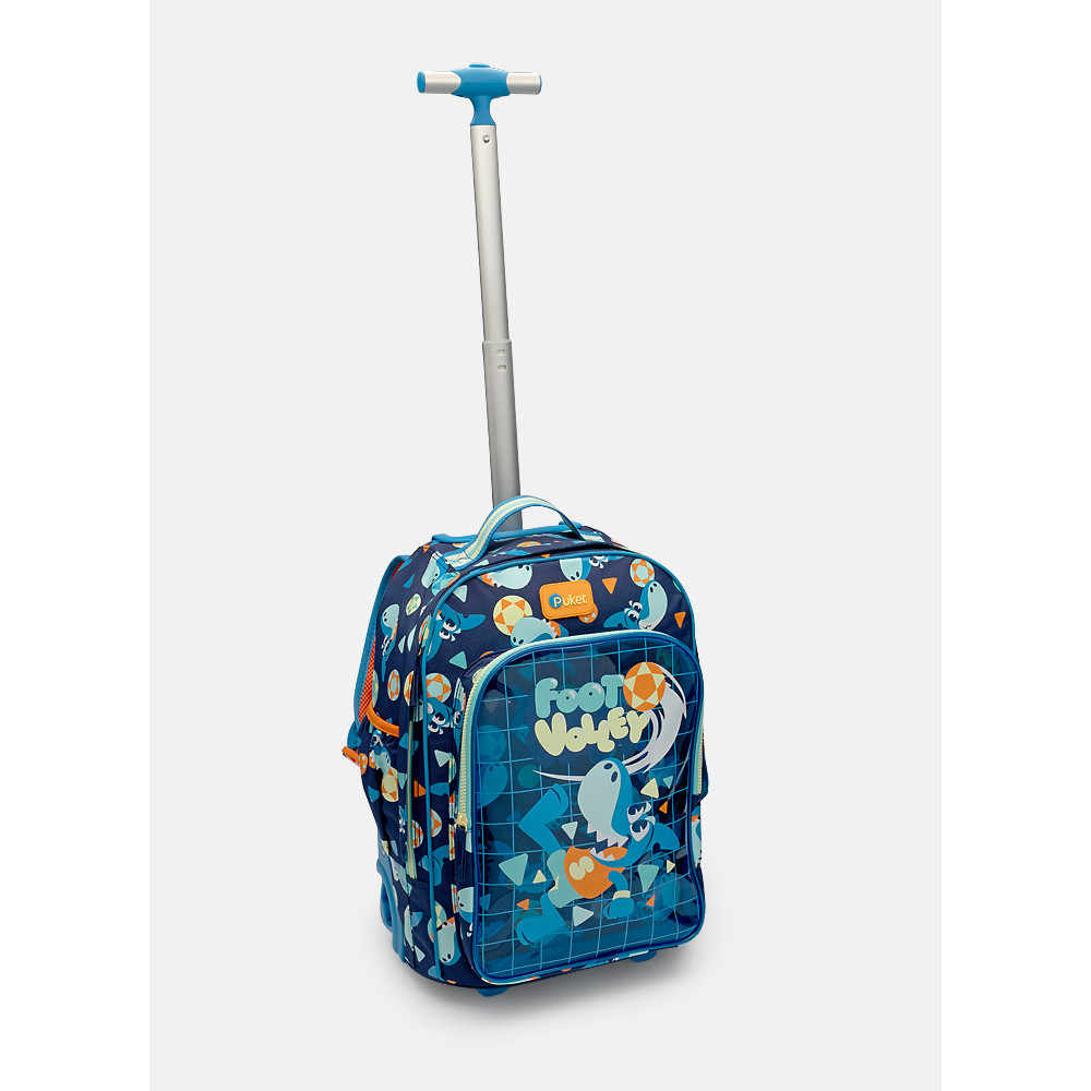 Mochila com Rodinhas Infantil Menino Escolar Grande Tubarão Futevôlei Azul Puket