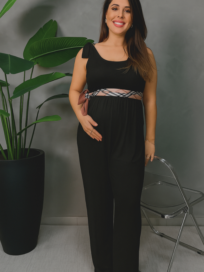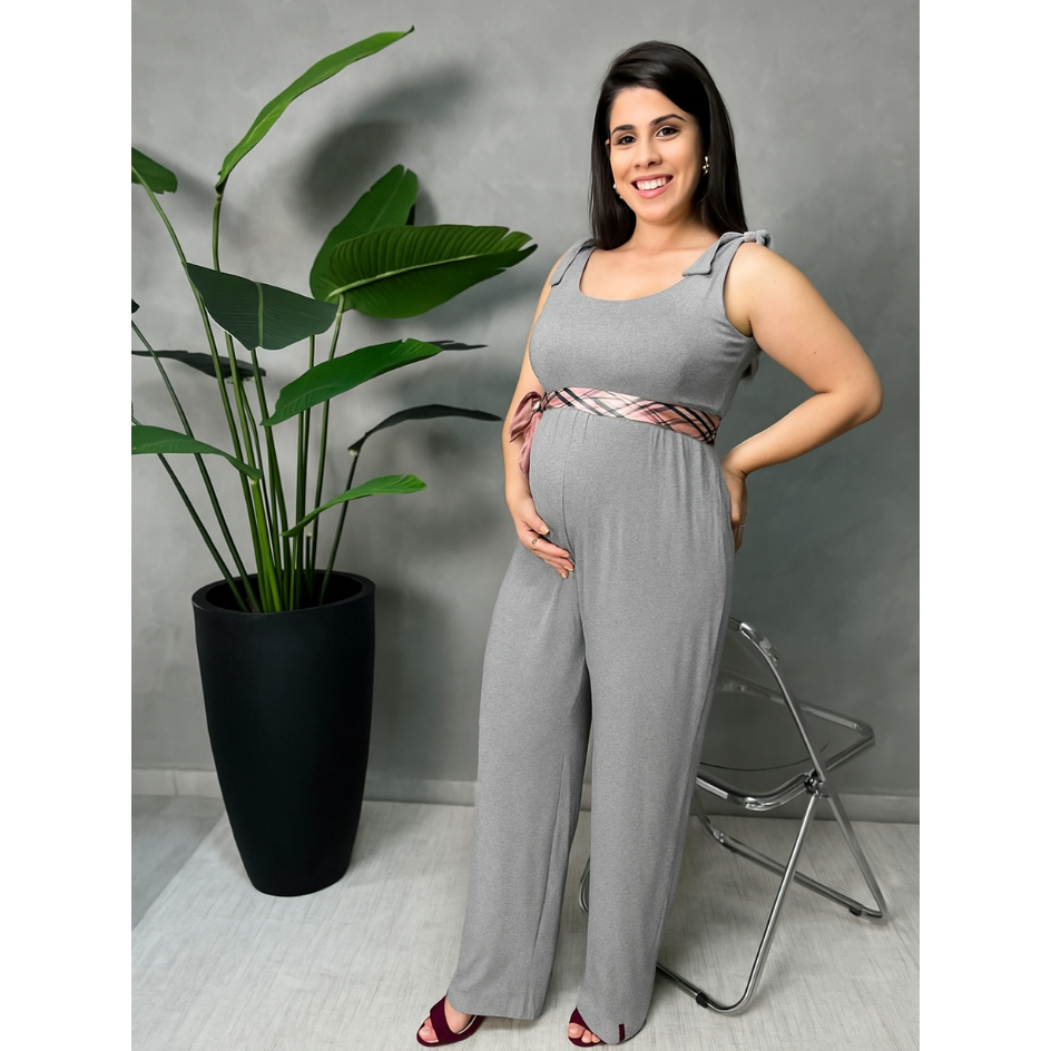 Macacão Gestante Confortável Viscolaycra Alta Qualidade Moda Maternidade Amarração no Ombro Macacão gestante estilosa