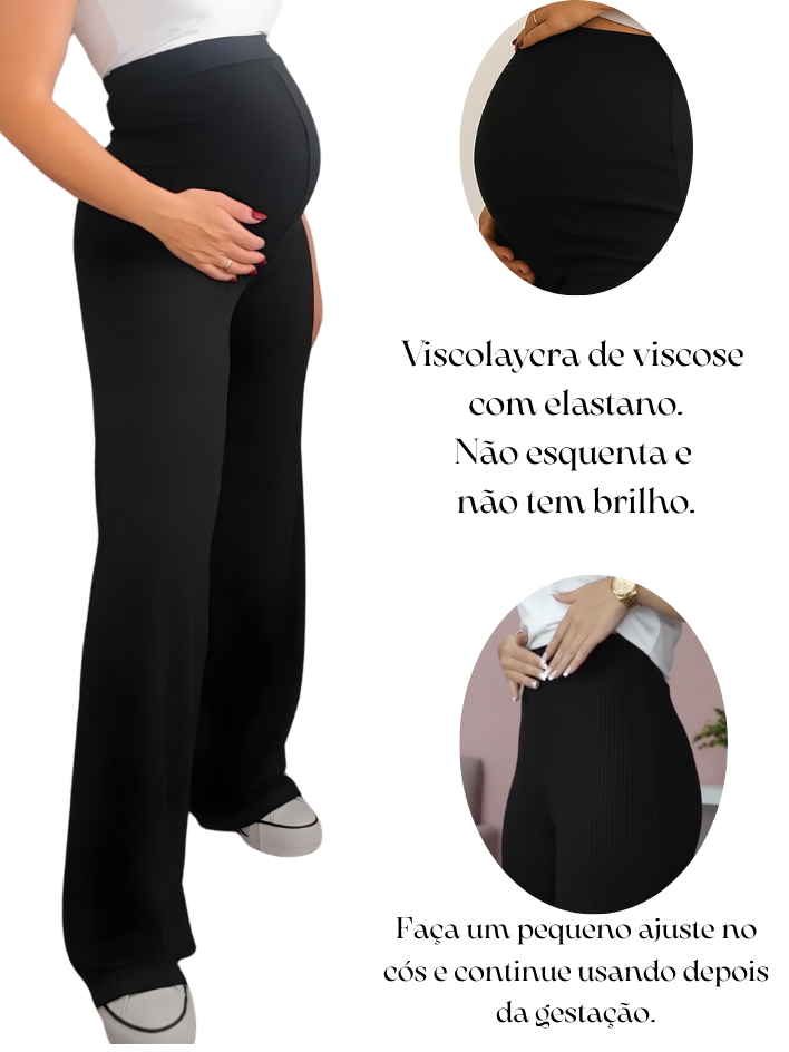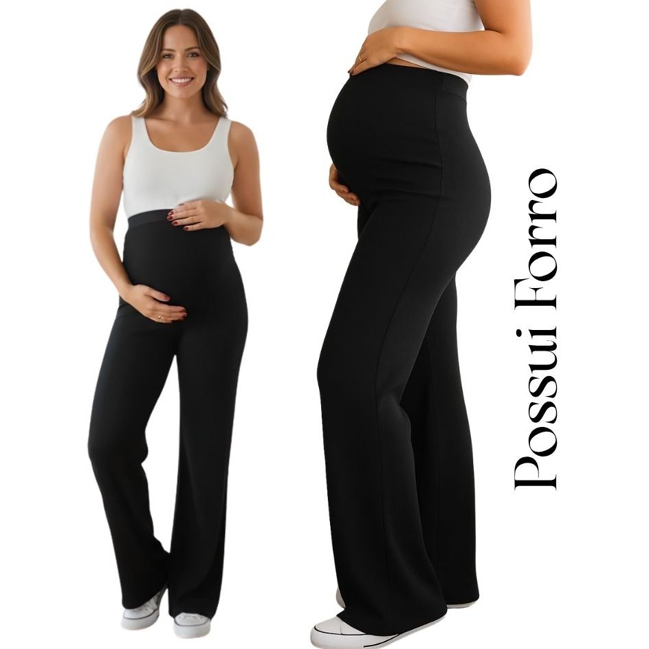 Calça Gestante Pantalona Cós Max com Forro Confortável, Não Transparente P ao G2 Calça Gravida Trabalho Plus Sise