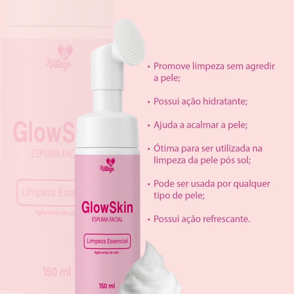 Espuma Sabonete Facial GLOW SKIN de Limpeza Com Aplicador 150ml