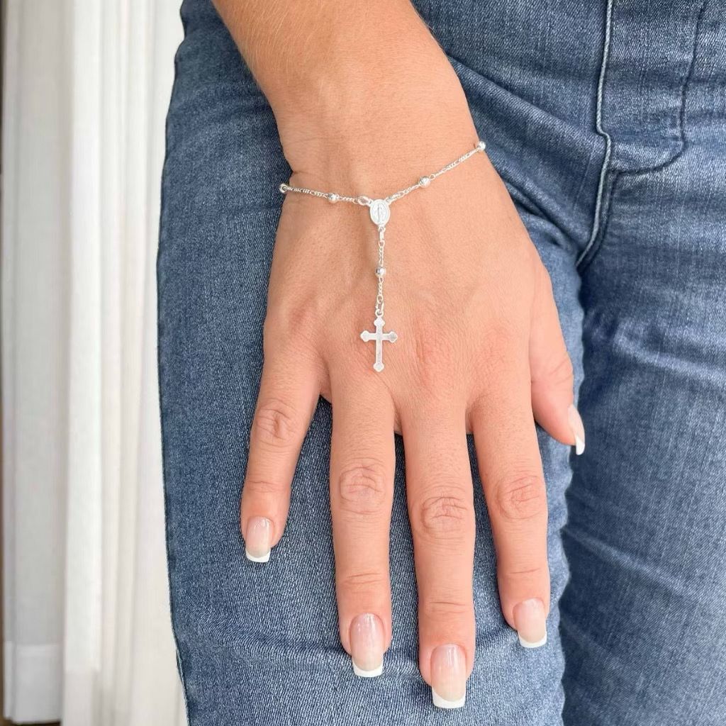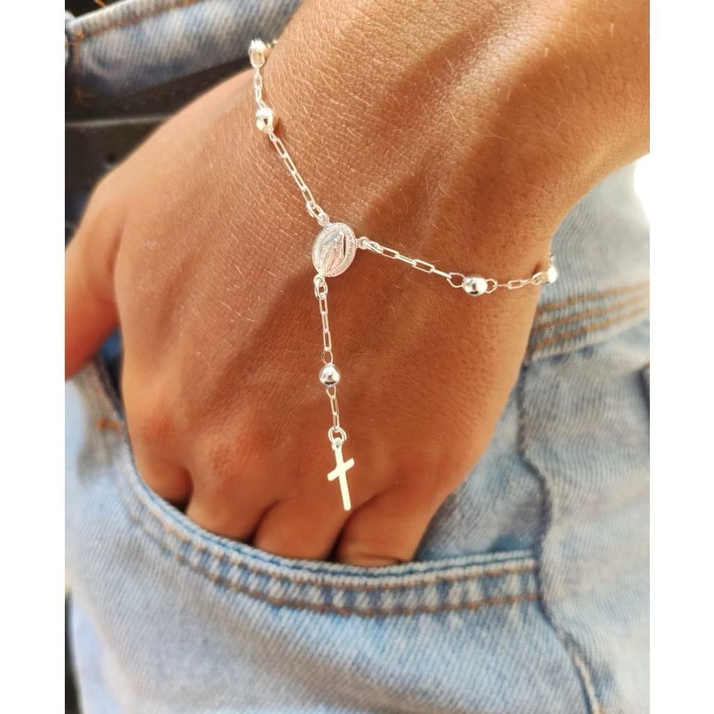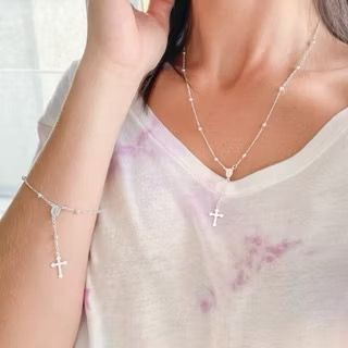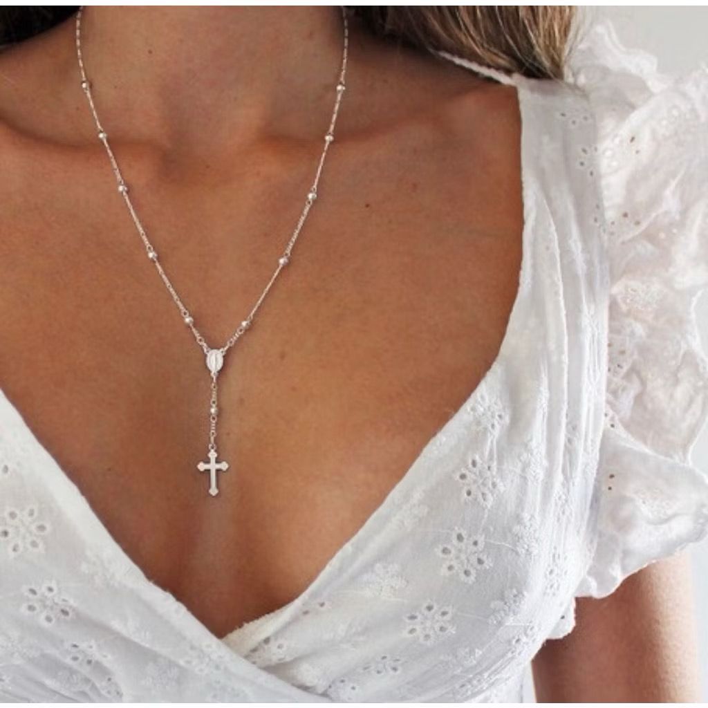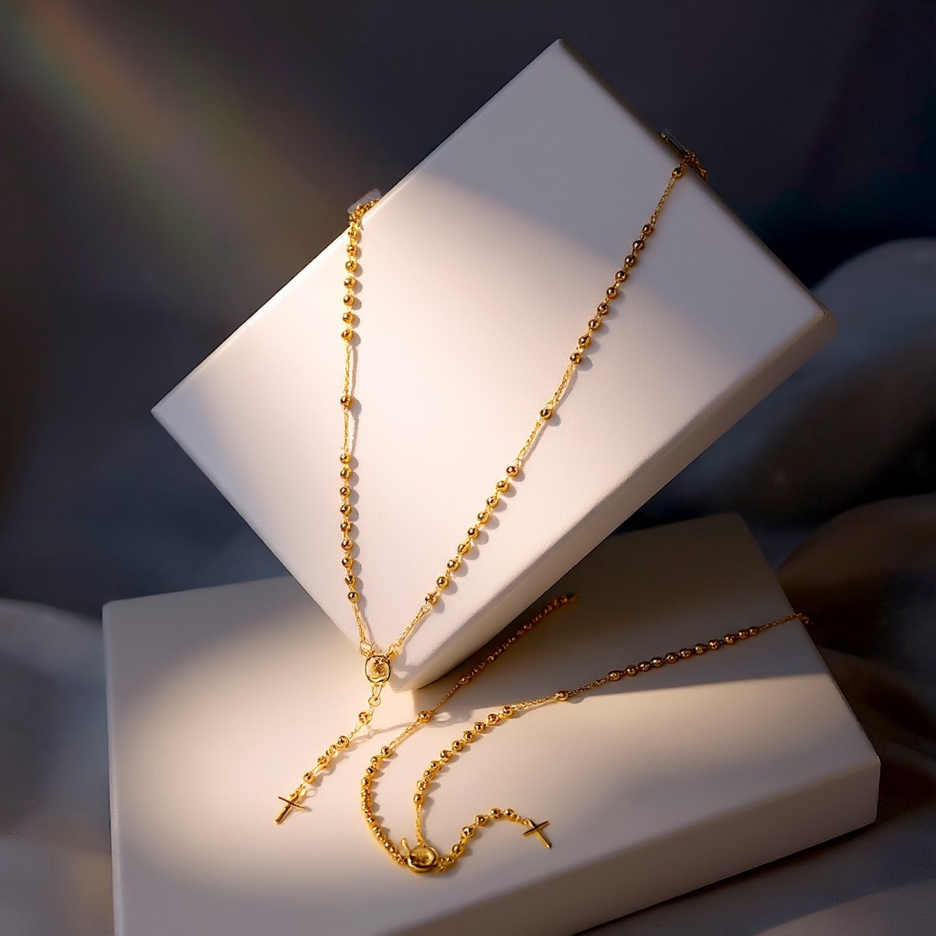 COLAR TERÇO NOSSA SENHORA APARECIDA PROTEÇAO BANHADO A PRATA E OURO 18K