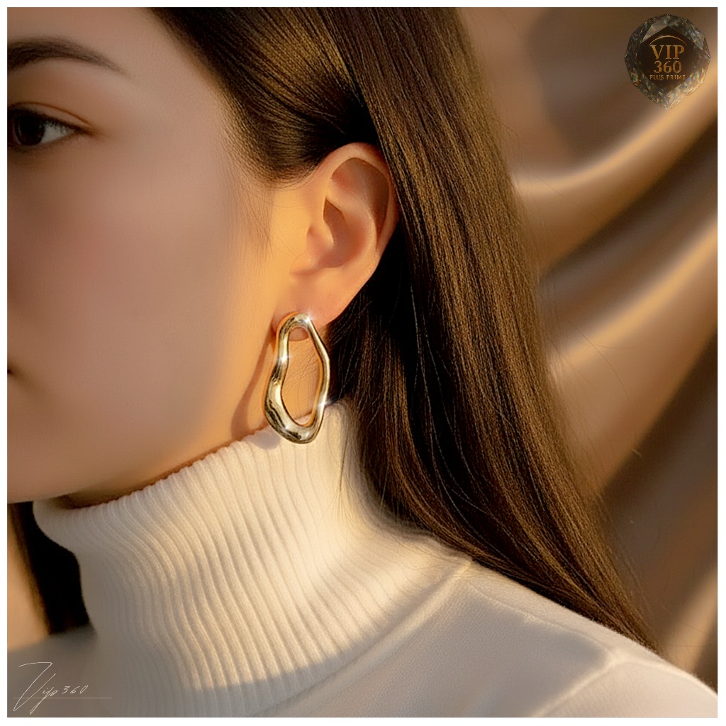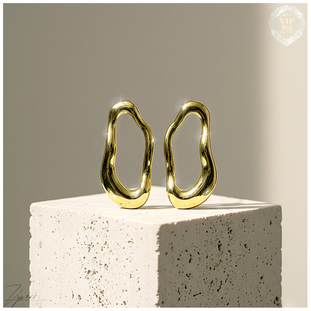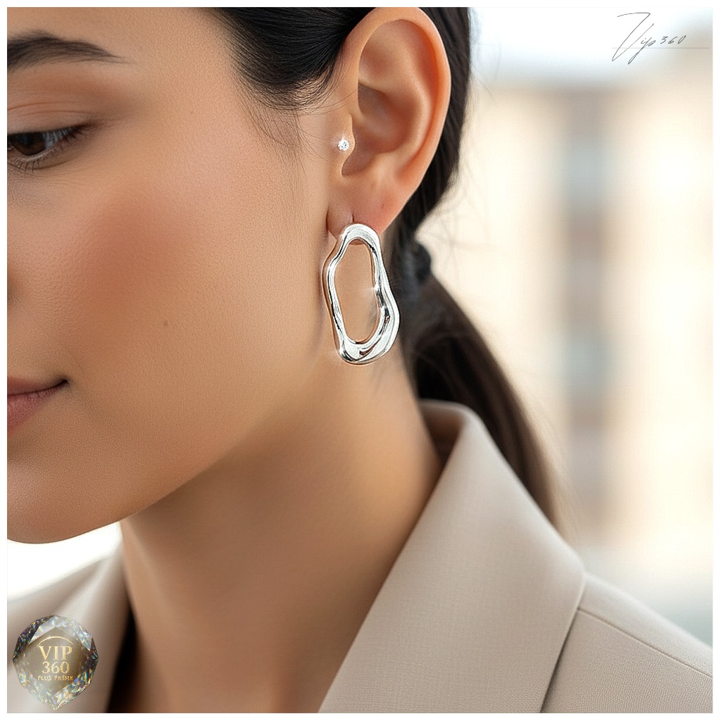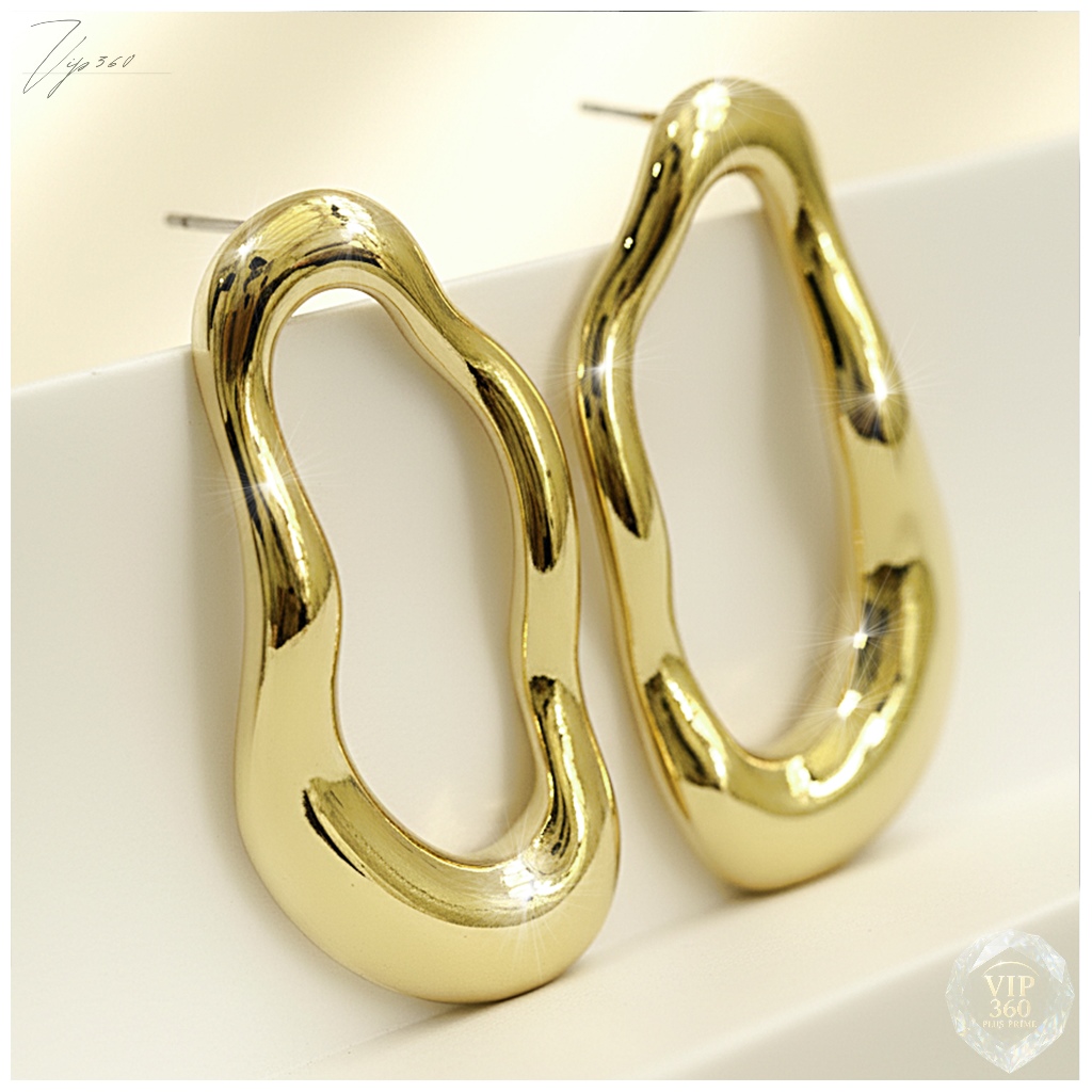 Brinco Orgânico Vazado Minimalista Folheado Ouro 18k / Níquel brilhante (prata espelhada) Tendência