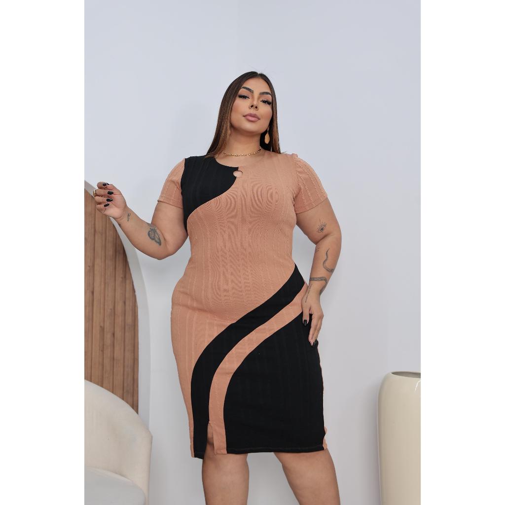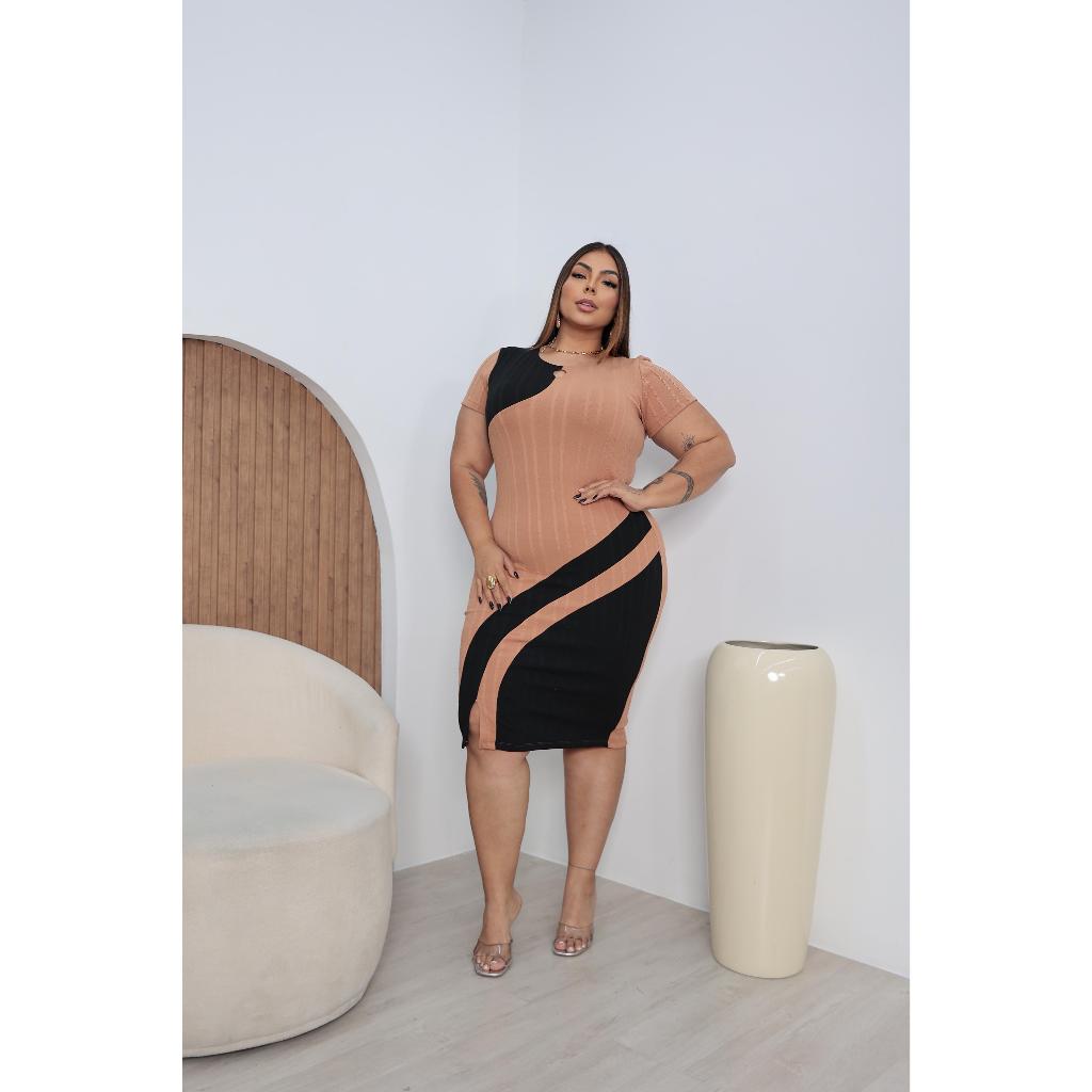 Vestido Feminino Tubinho Midi Combinado Plus Size Modelador Linha Premium Moda Evangélica Casual