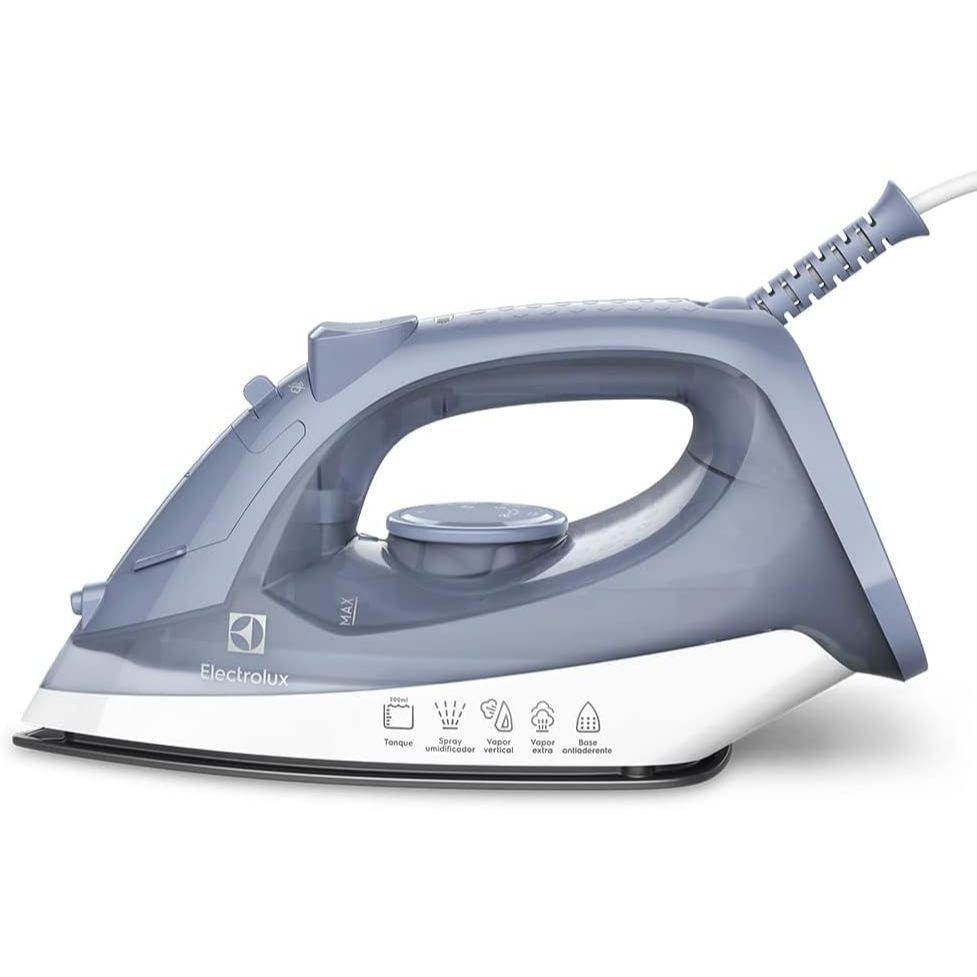 Ferro de passar seco e vapor Electrolux base antiaderente vapor vertical extra 1200W cabo 1,35m azul ESI10 127v
