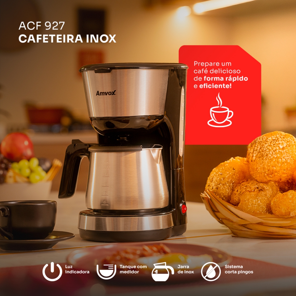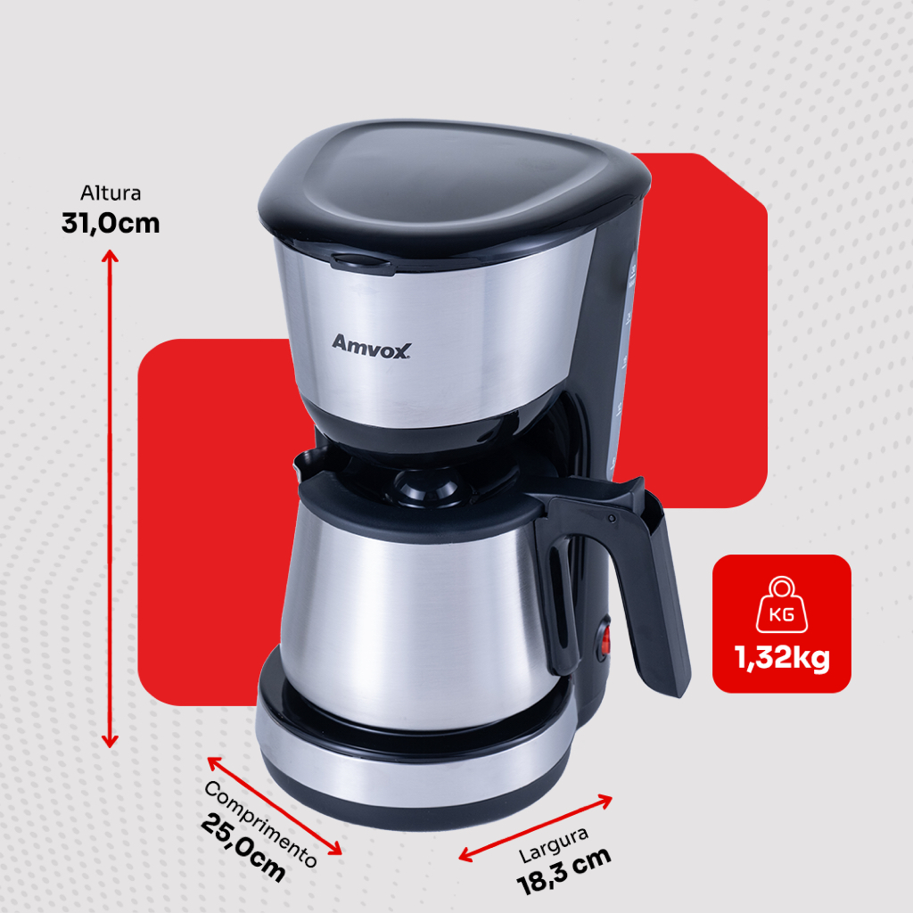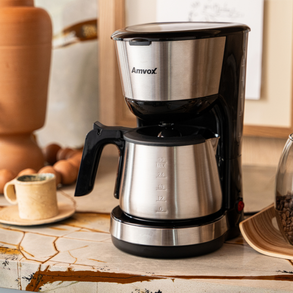 Cafeteira Elétrica Amvox ACF 927 900W 30 Xicaras Jarra de 1,5L INOX