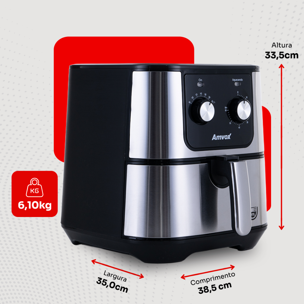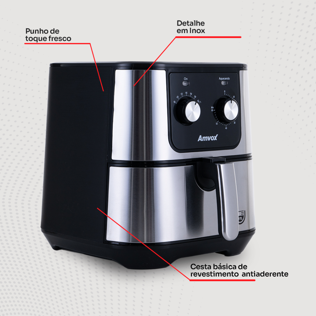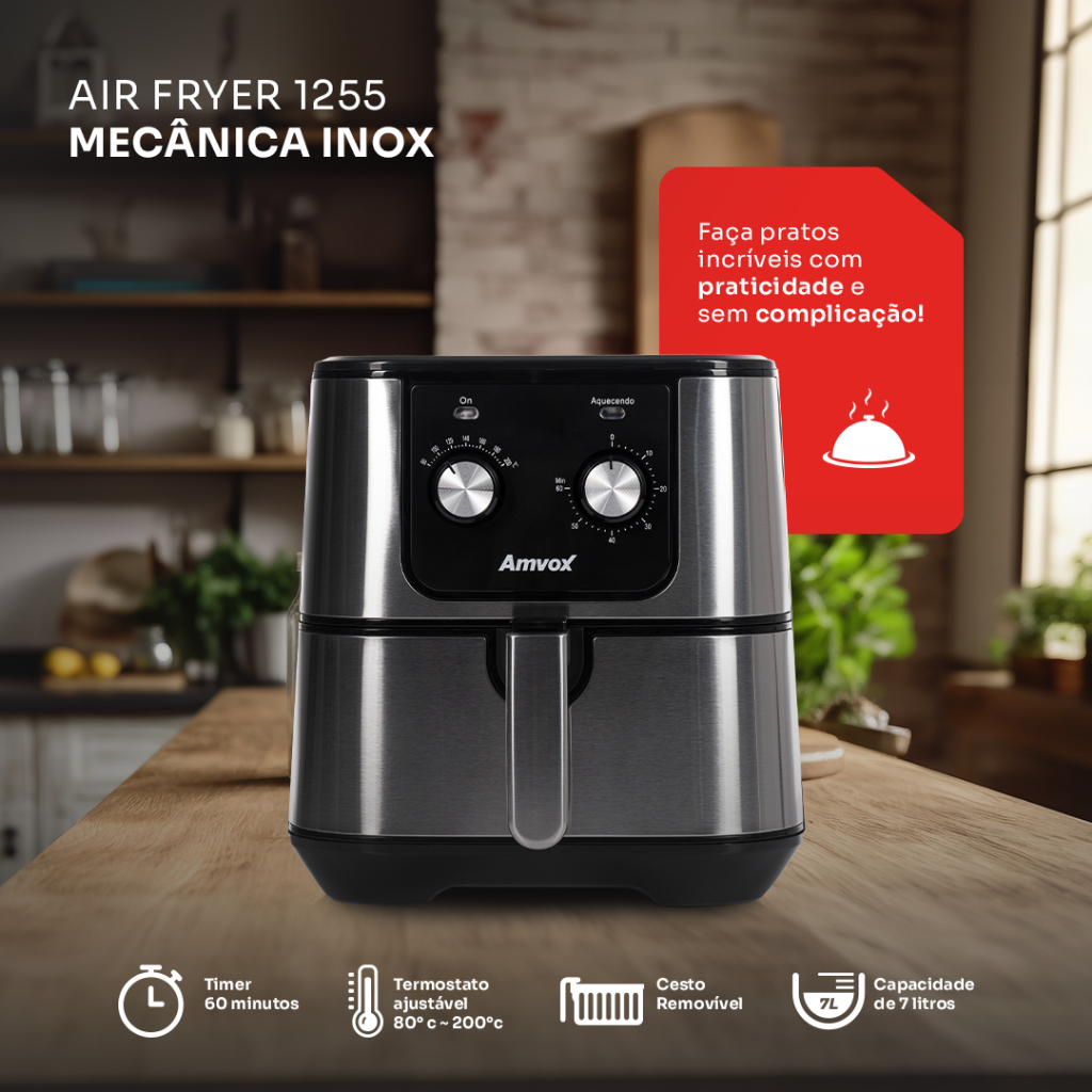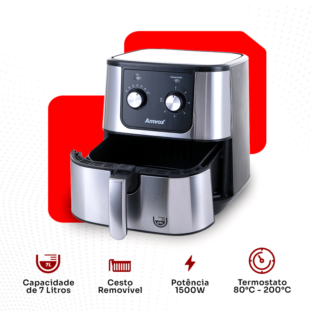 Fritadeira Sem Óleo Air Fryer Amvox ARF 1255 M INOX 1700W