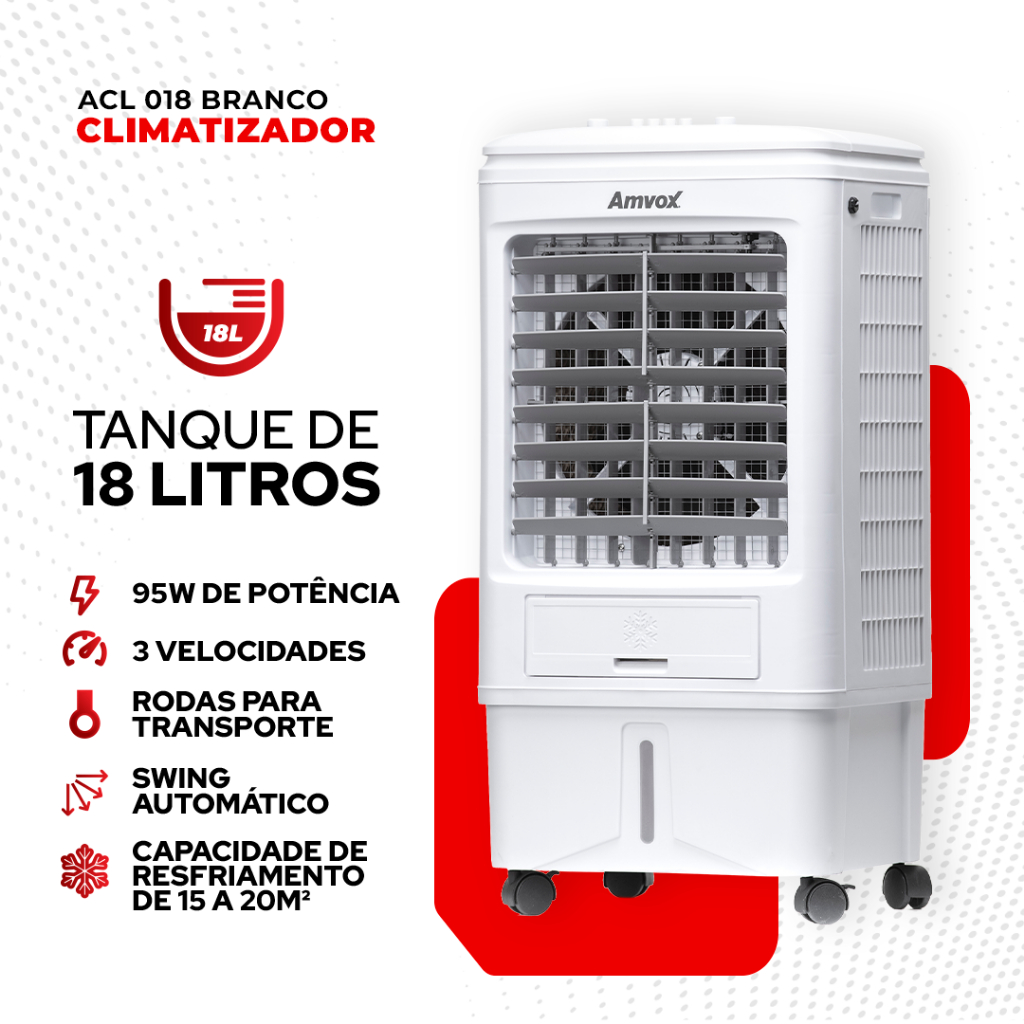 CLIMATIZADOR DE AR 3 VELOCIDADES 18L AMVOX ACL 018 BRANCO 90W