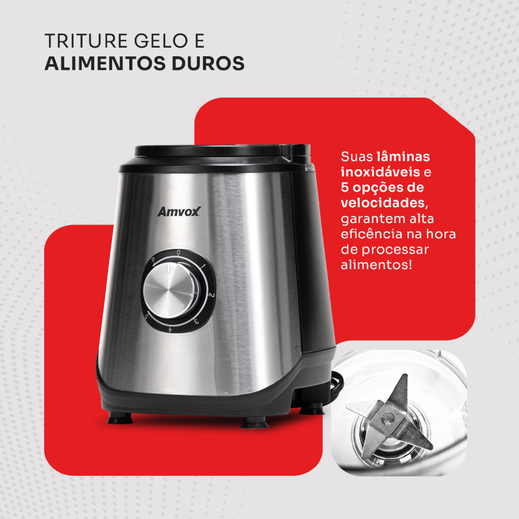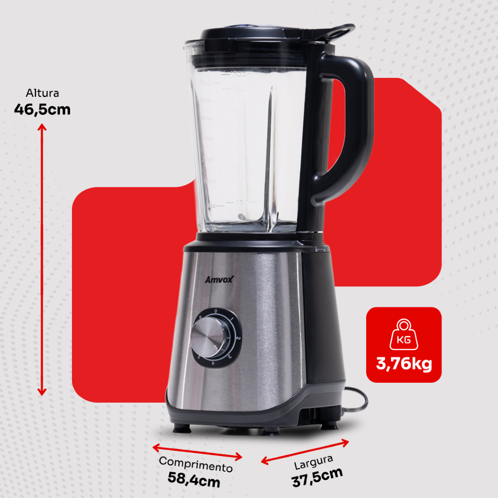 Liquidificador Amvox Alq 0209 Jarra De Vidro 1.7l Modo Turbo Alta Velocidade Tritura Gelo