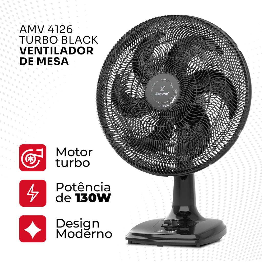 Ventilador de Mesa Amvox 50cm AMV 4126 Turbo 6 Pás 3 Velocidades 130W Black