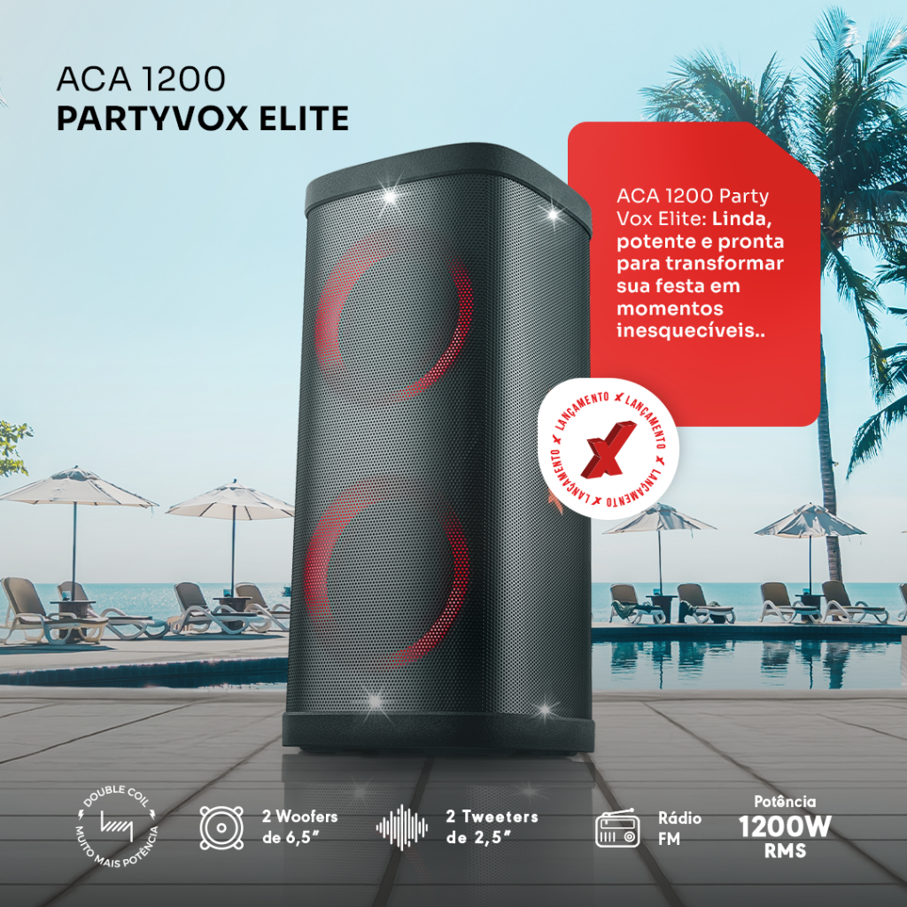 Caixa de Som Amvox 1200W ACA1200 Party Vox Elite Woofer 6,5