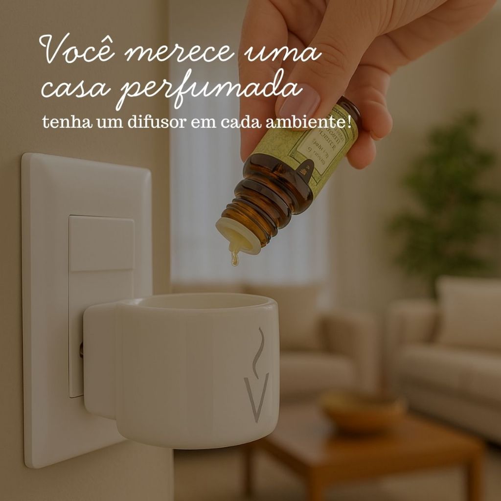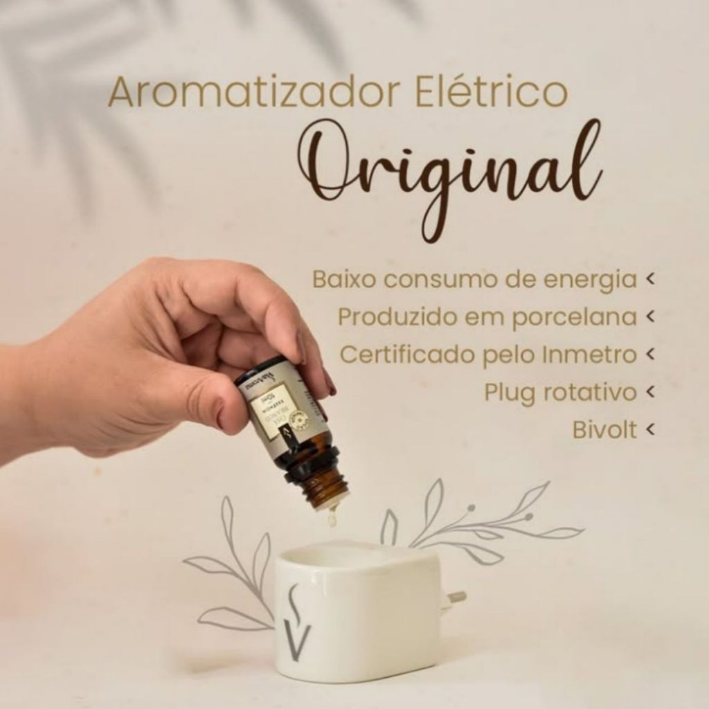 Aromatizador Branco Porcelana Elétrico Via Aroma Difusor de essencia hidrossoluvel e oleo essencial