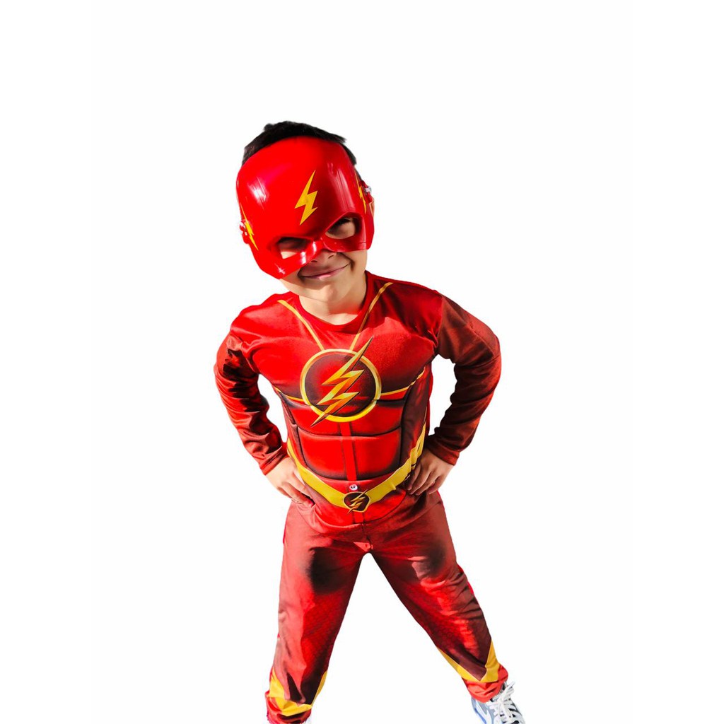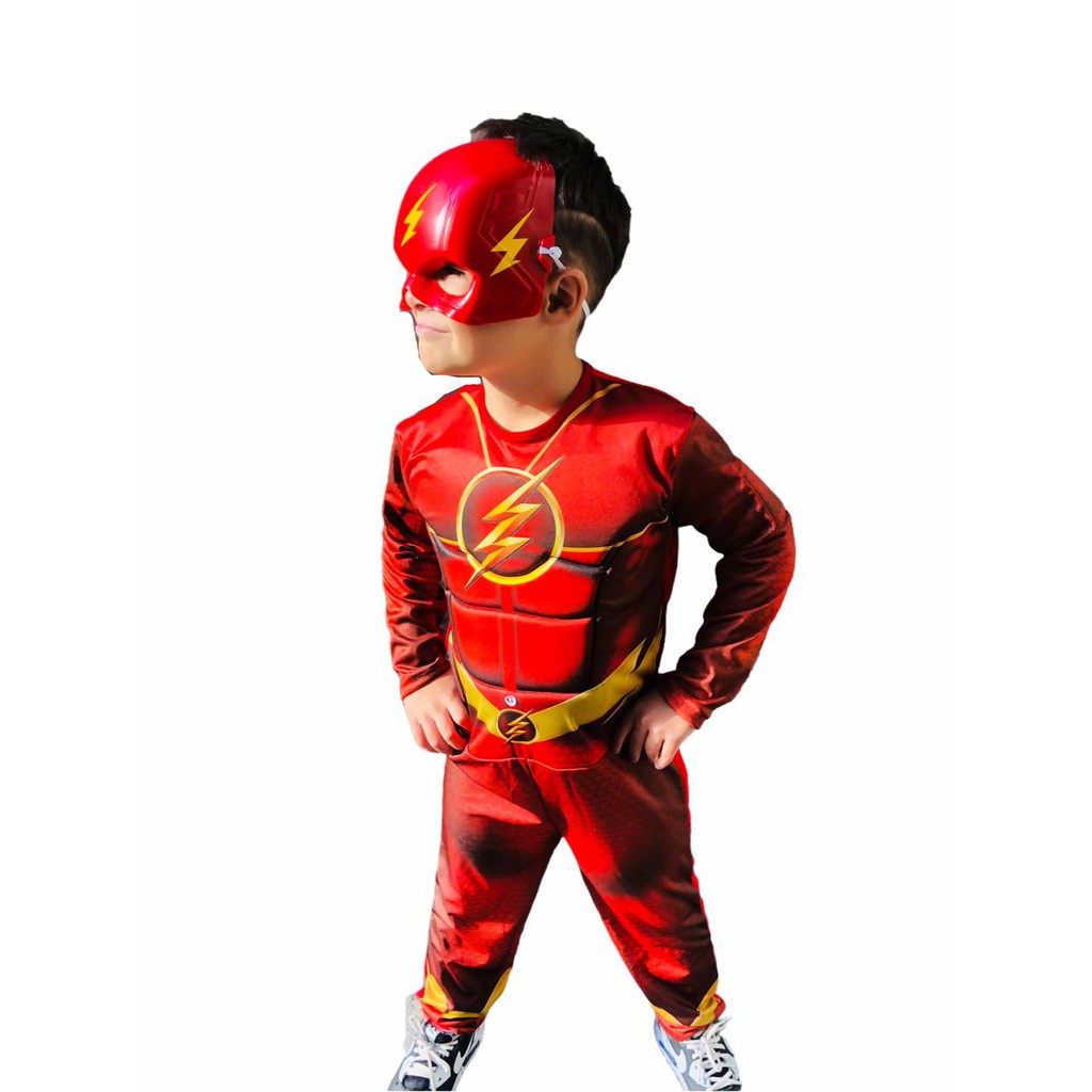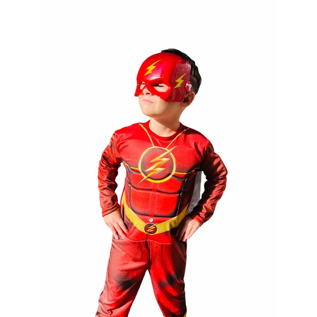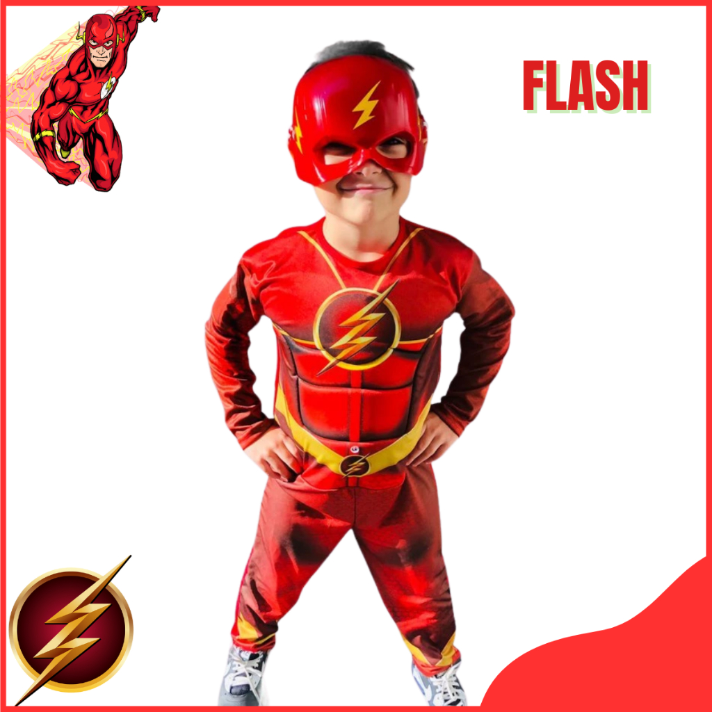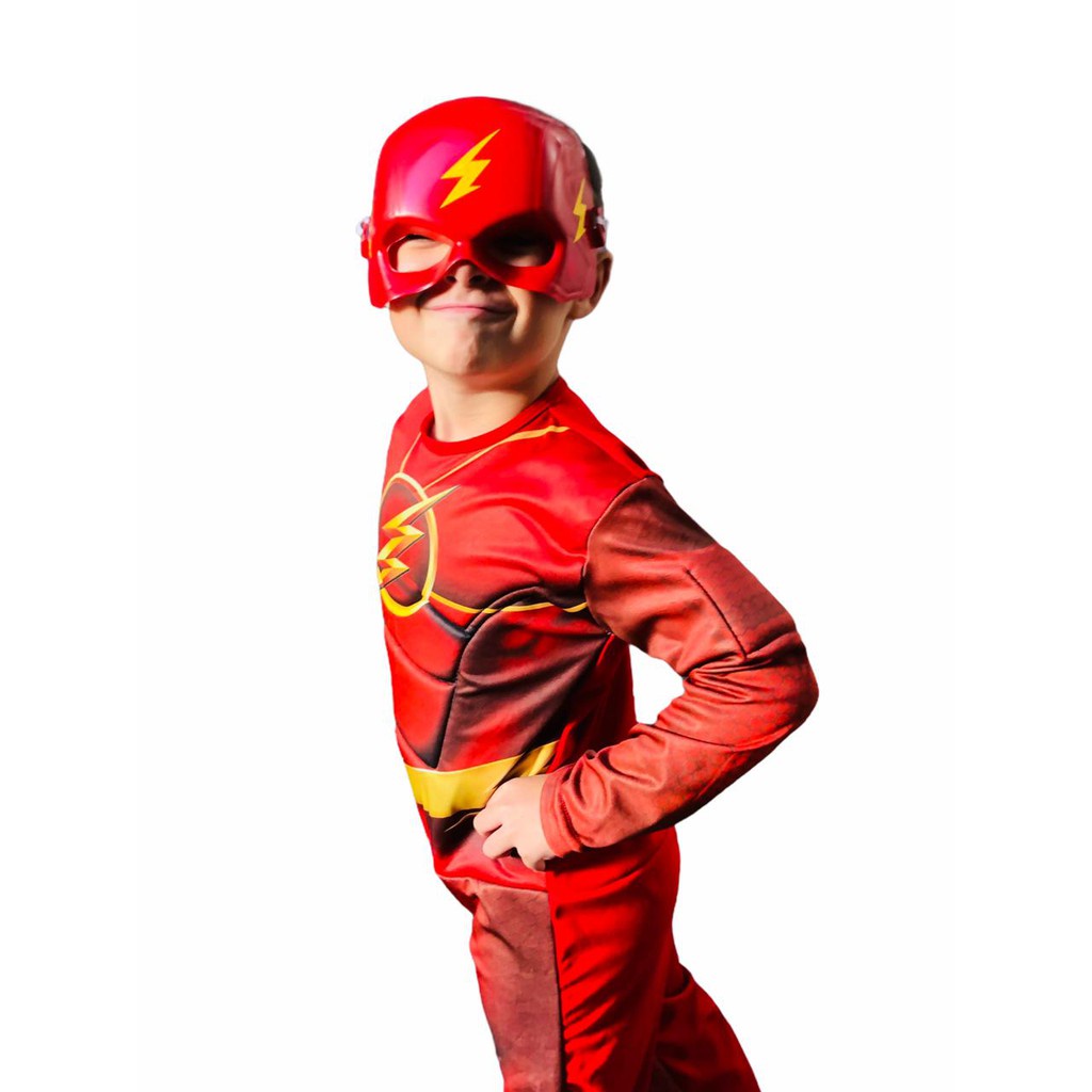 Fantasia Do Flash Longa Com Enchimento E Mascara De Plastico