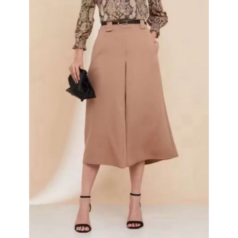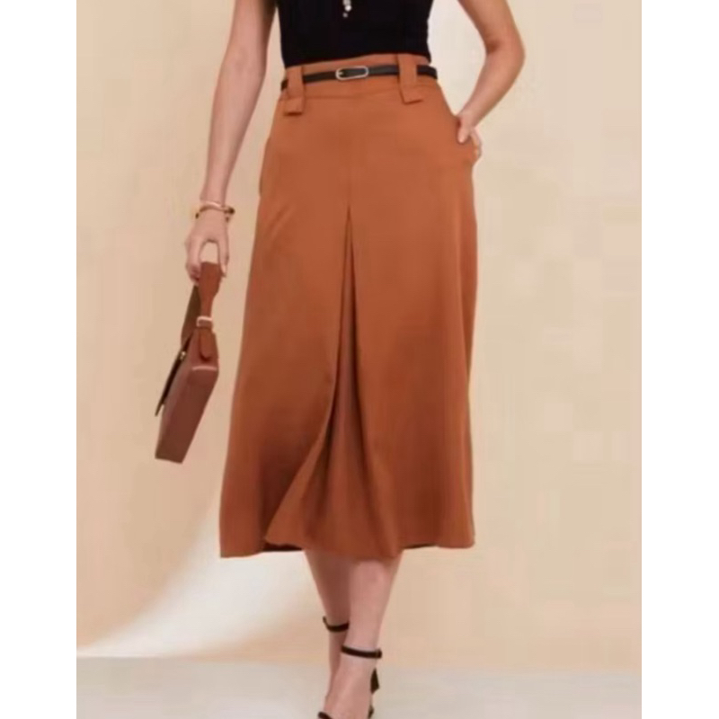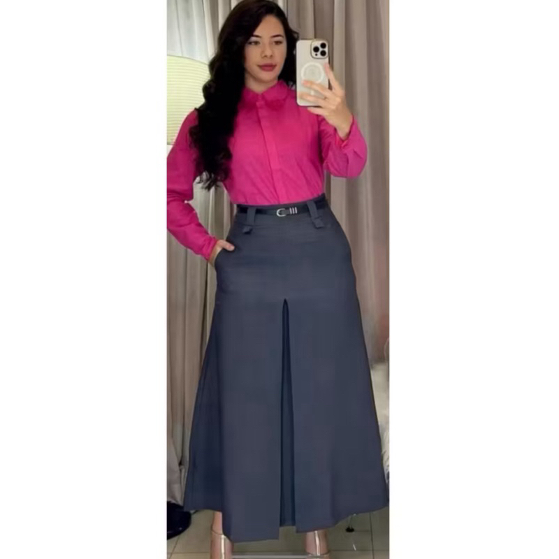 Saia Longa Alfaiataria Fit e Flare Feminina Moda Evangélica Cintura Alta Fenda Fechada
