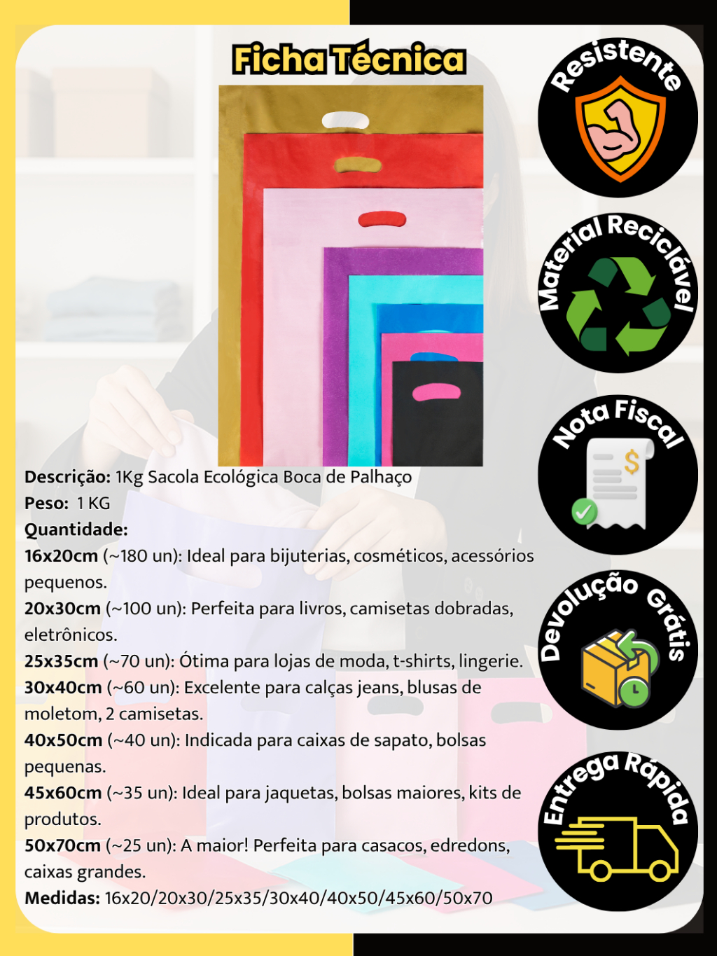 Sacola Boca de Palhaço Reforçada – Atacado 1kg | Sustentável para Lojas e Roupas