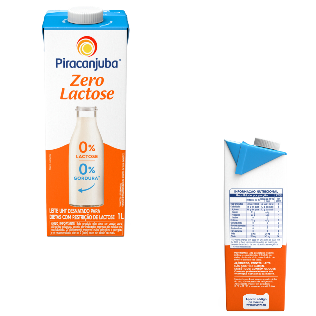 Kit C/12 Leite Uht Desnatado Zero Lactose Piracanjuba 1l