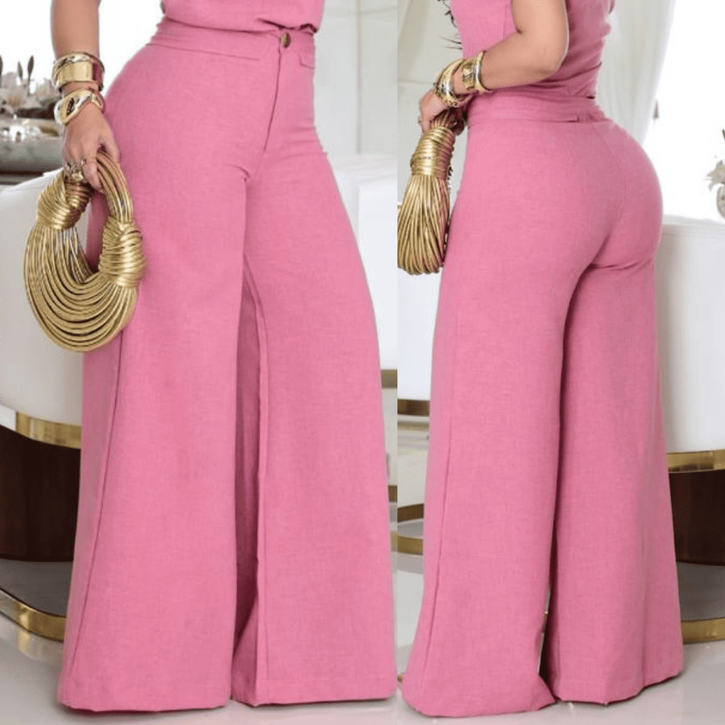 Calça Pantalona Feminina Linho Sofisticada Vista com Elegância e Conforto Ziper e Botão Frontal