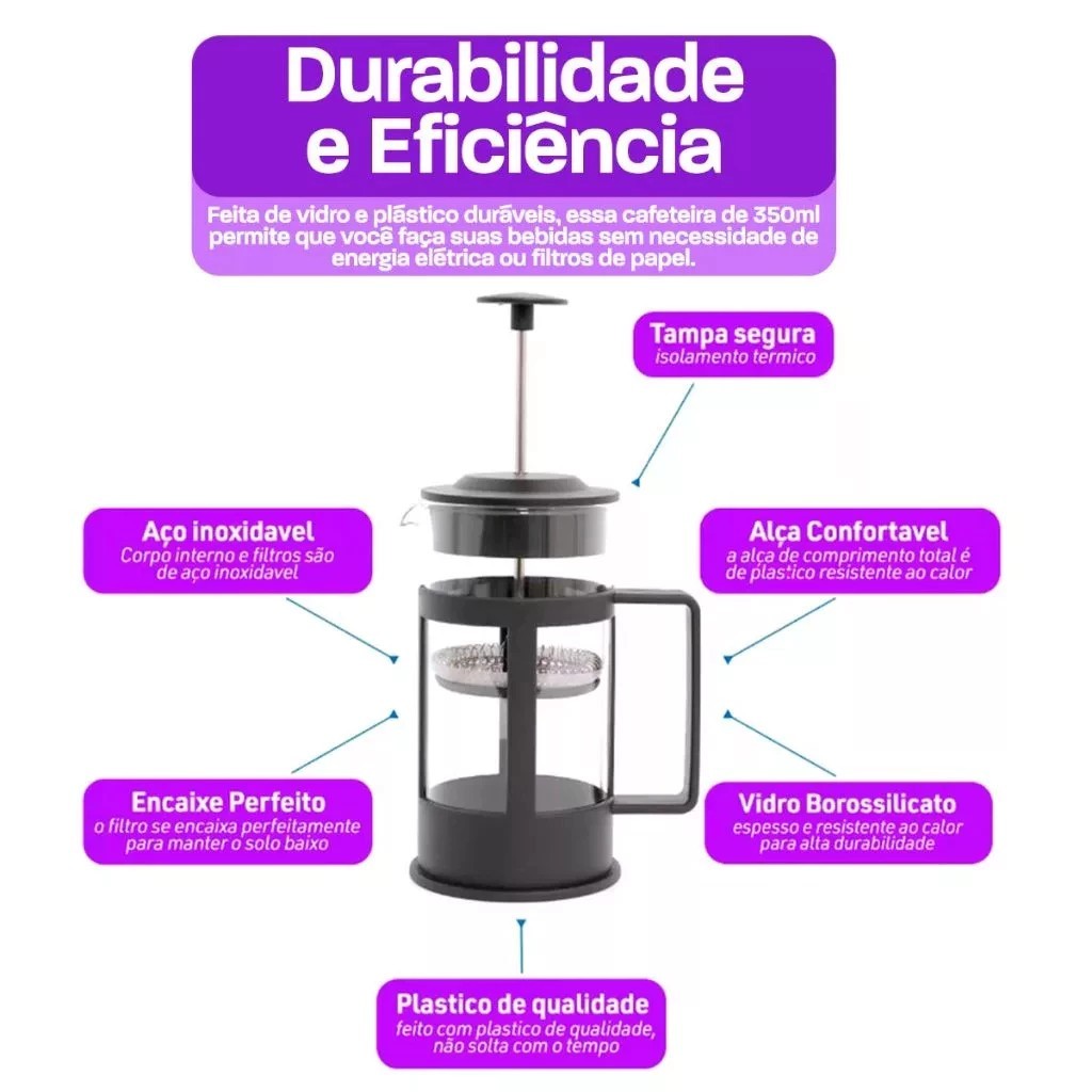 Cafeteira Prensa Francesa 300ml Ideal Café Leite Chá Cremoso Cozinha Escritório Uso Diário