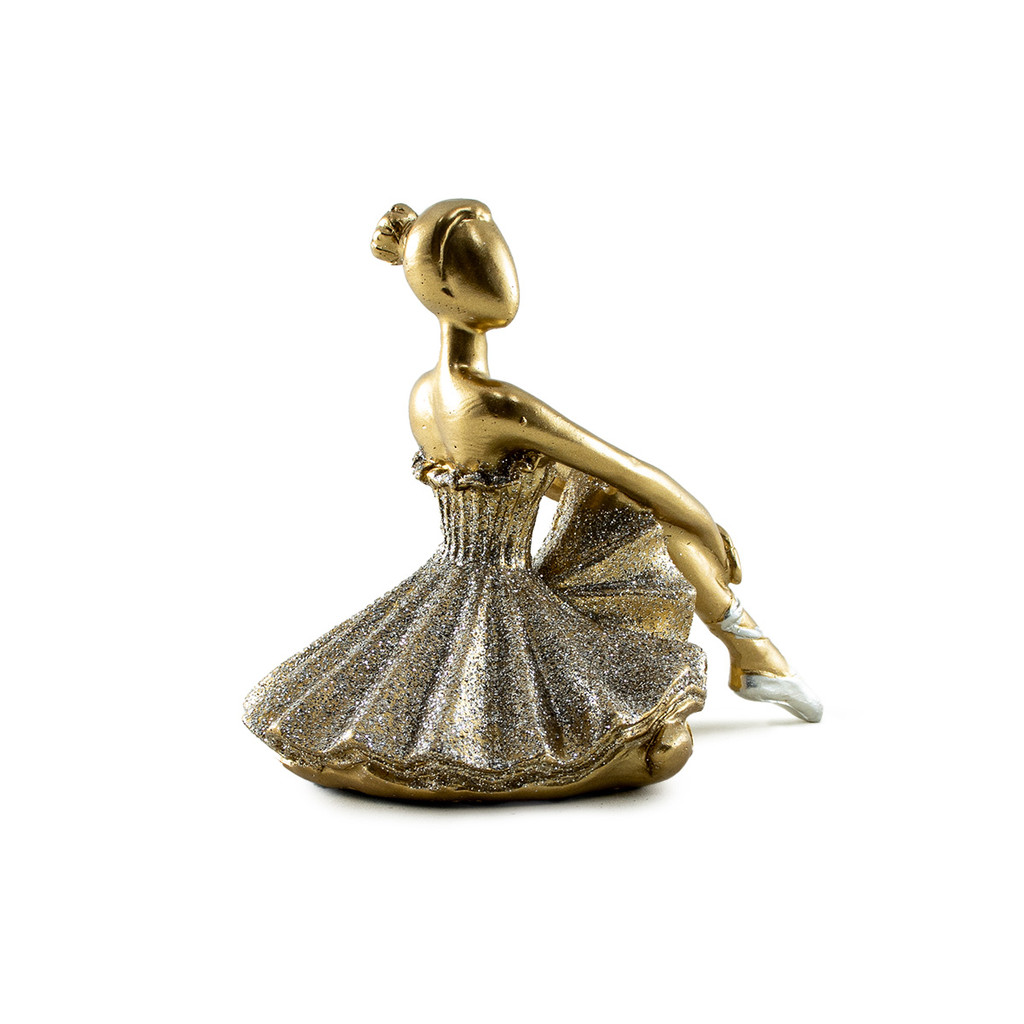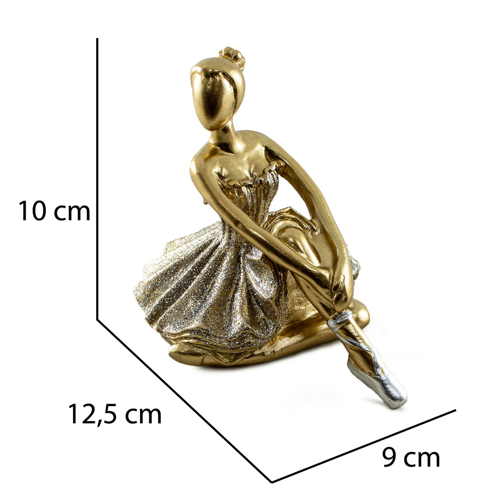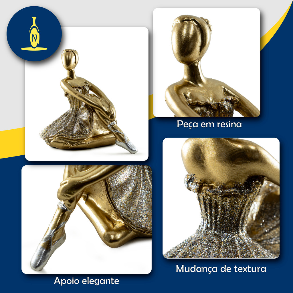 Estátua Bailarina Dançarina Balé Para Decoração Enfeite Sala Quarto Casa Escultura De Resina Dourada Brilhante Pequena