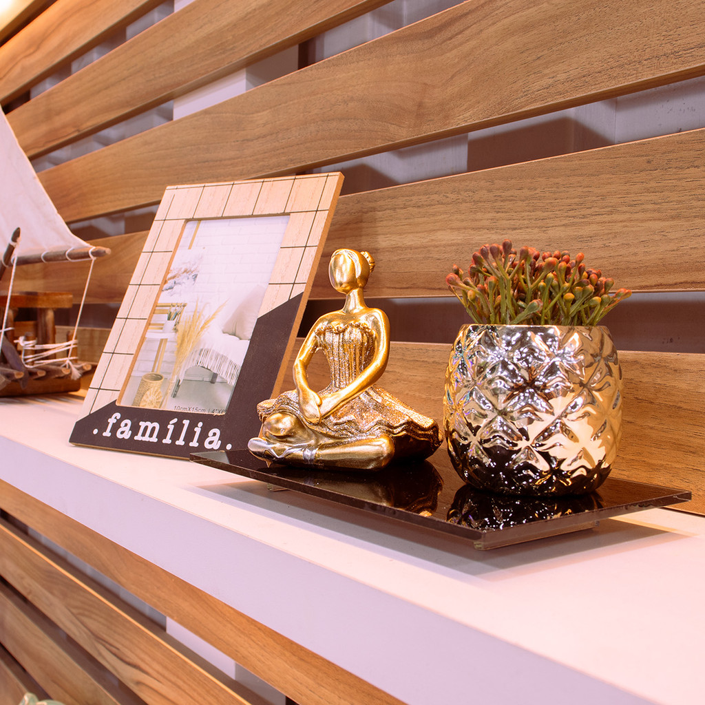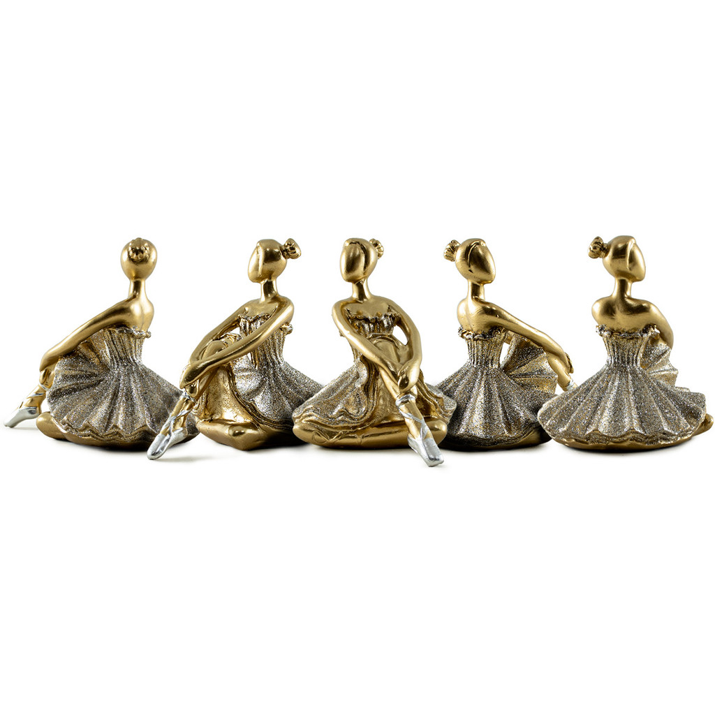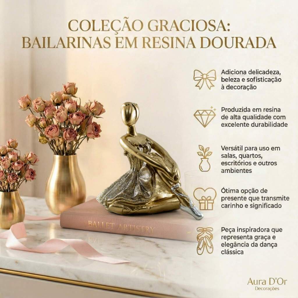 Estátua Bailarina Dançarina Balé Para Decoração Enfeite Sala Quarto Casa Escultura De Resina Dourada Brilhante Pequena