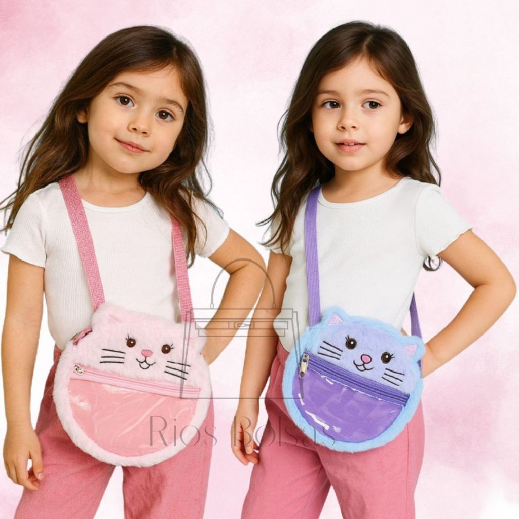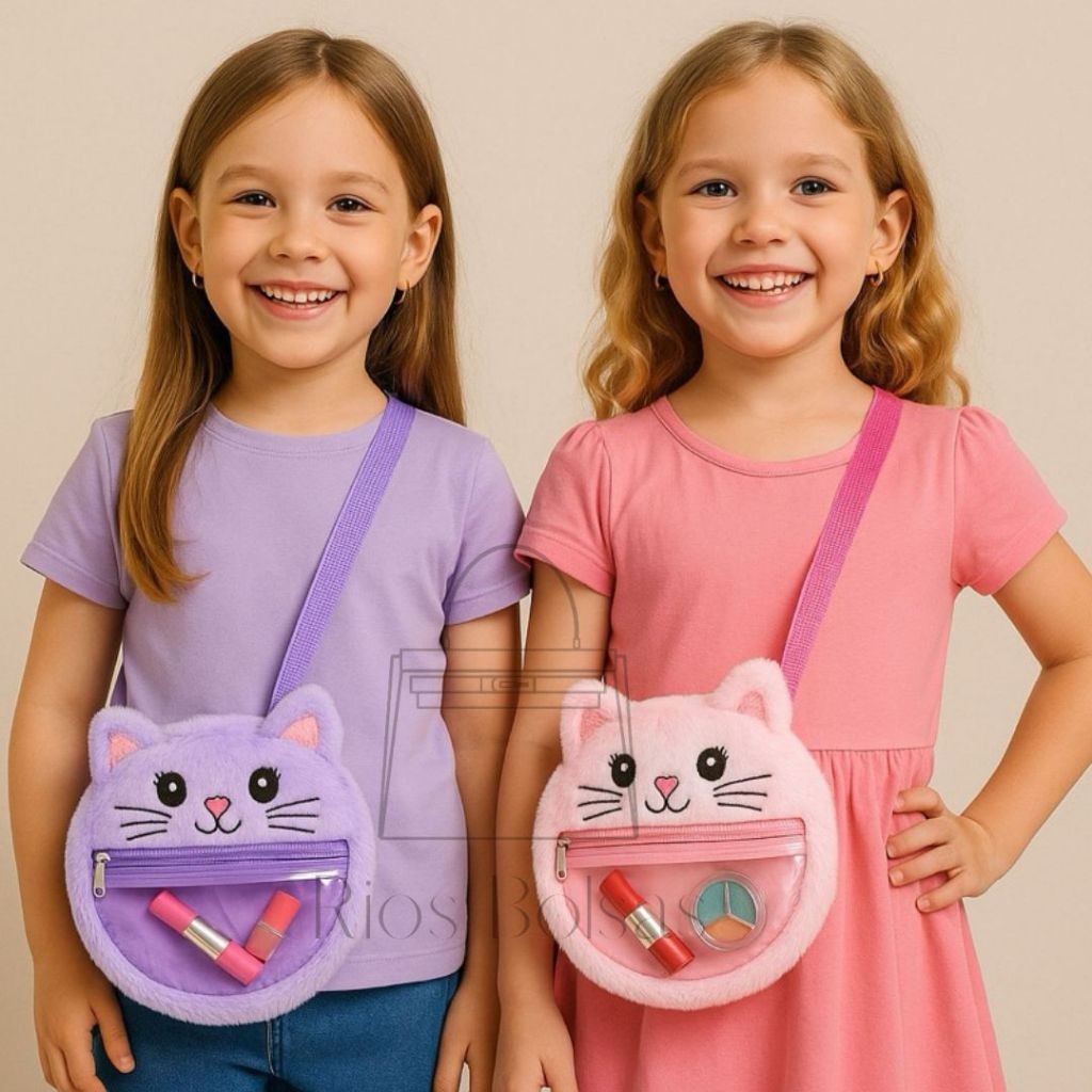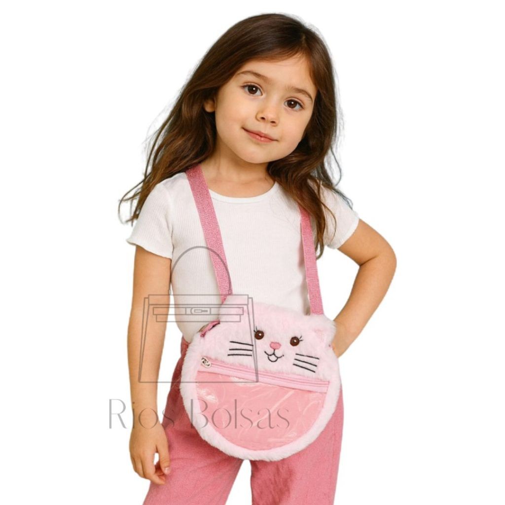 Bolsa Infantil Transversal Ombro Pelúcia Gatinha