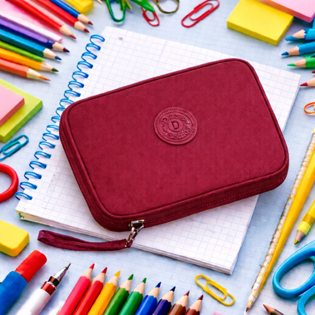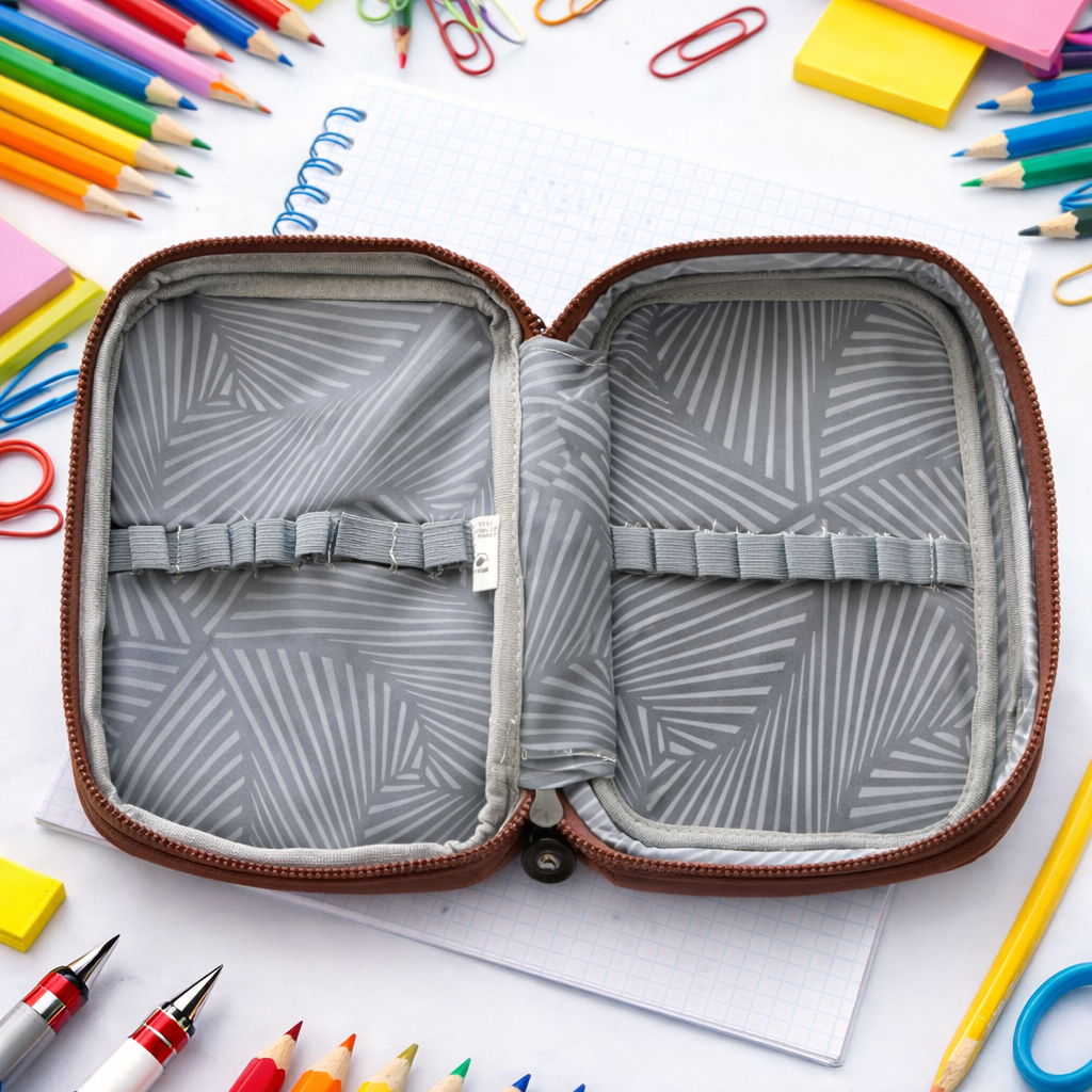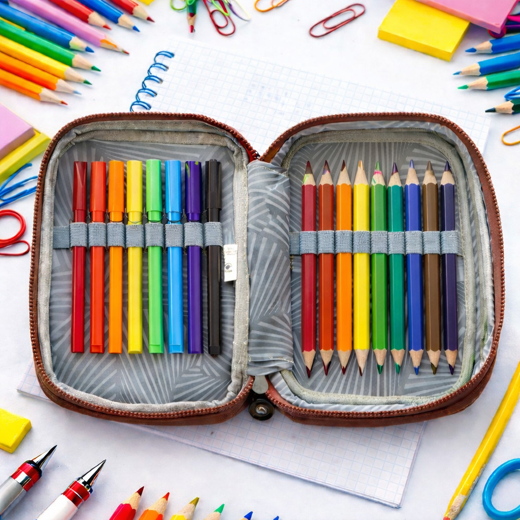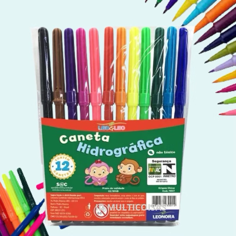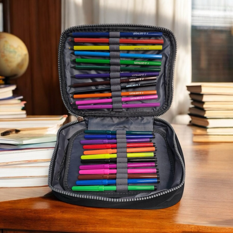 Kit Escolar Estojo Grande 2 Divisórias + Canetinha 12 cores + Lápis de cor 12 Cores Volta as Aulas